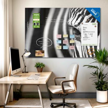 Die banjado Glas Magnettafel mit dem Motiv Motiv Zebra En Face verbindet Funktionalität mit Stil. Sie ersetzt das Zettelchaos durch klare Strukturen und bringt dabei eine warme, natürliche Atmosphäre in Ihr Zuhause. Ob im Büro, in der Küche oder im Eingangsbereich - dieses Design-Board zieht Blicke an und sorgt für Ordnung mit Charakter.