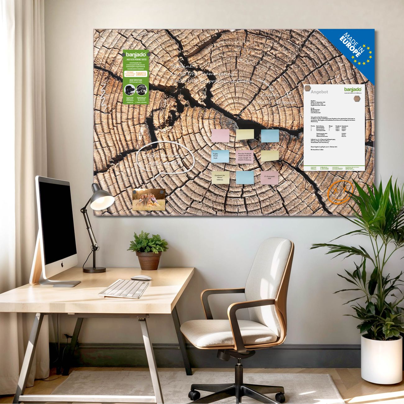 Die banjado Glas Magnettafel mit dem Motiv Motiv Zeichen Der Zeit verbindet Funktionalität mit Stil. Sie ersetzt das Zettelchaos durch klare Strukturen und bringt dabei eine warme, natürliche Atmosphäre in Ihr Zuhause. Ob im Büro, in der Küche oder im Eingangsbereich - dieses Design-Board zieht Blicke an und sorgt für Ordnung mit Charakter.