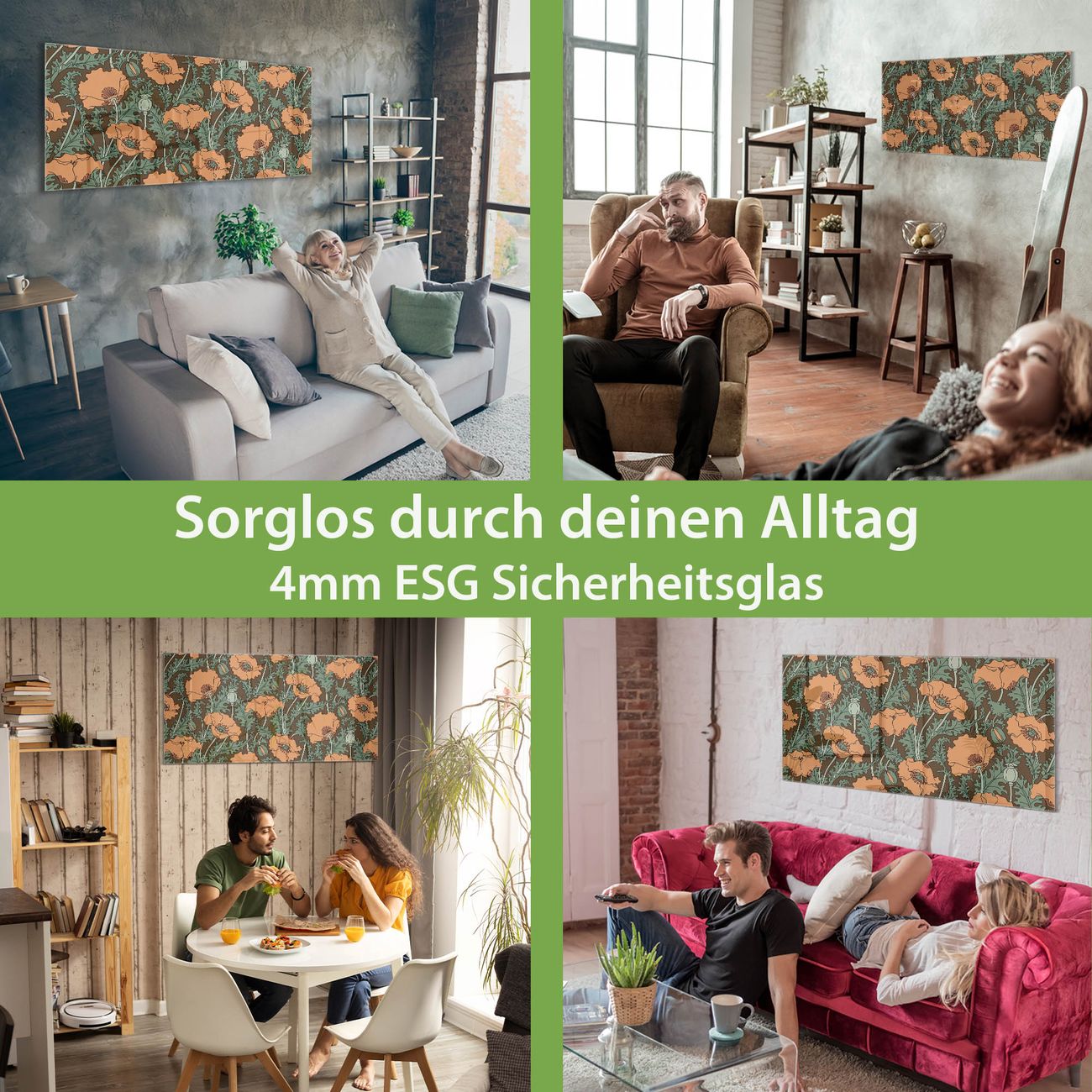 - Material: 4mm Sicherheitsglas mit Metallrückwand