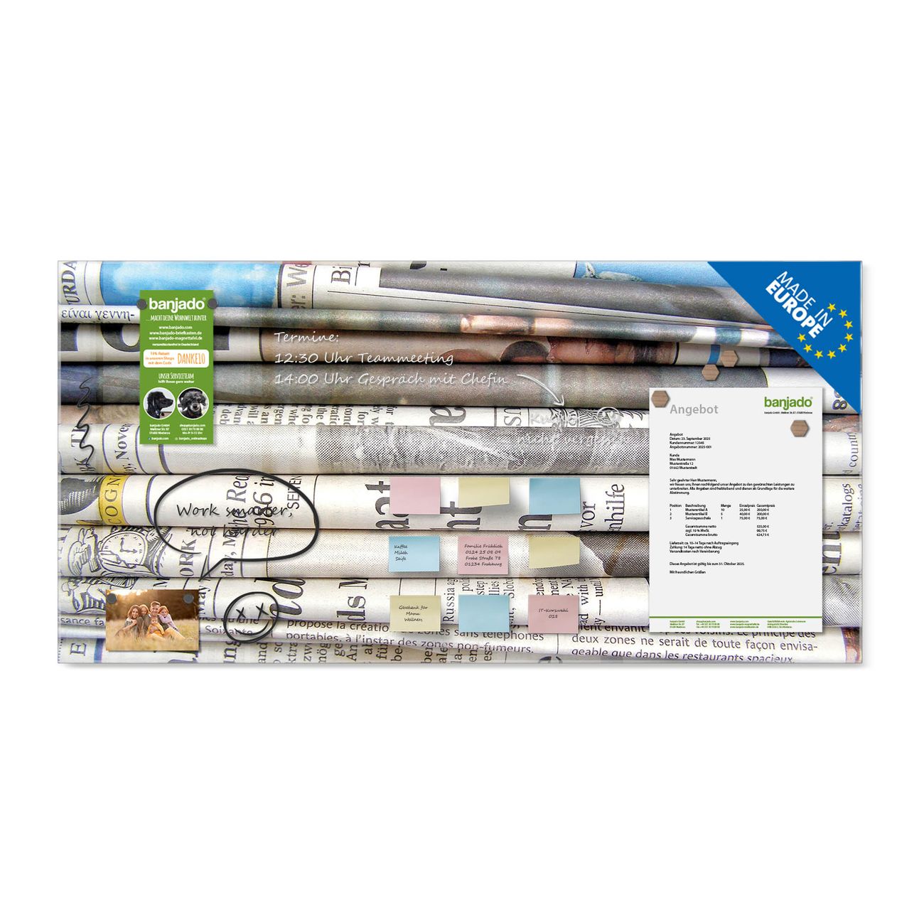 Glas Magnettafel im Querformat Motiv Zeitungen
