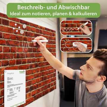 Die banjado Glas Magnettafel mit dem Motiv Motiv Ziegelwand verbindet Funktionalität mit Stil. Sie ersetzt das Zettelchaos durch klare Strukturen und bringt dabei eine warme, natürliche Atmosphäre in Ihr Zuhause. Ob im Büro, in der Küche oder im Eingangsbereich - dieses Design-Board zieht Blicke an und sorgt für Ordnung mit Charakter.