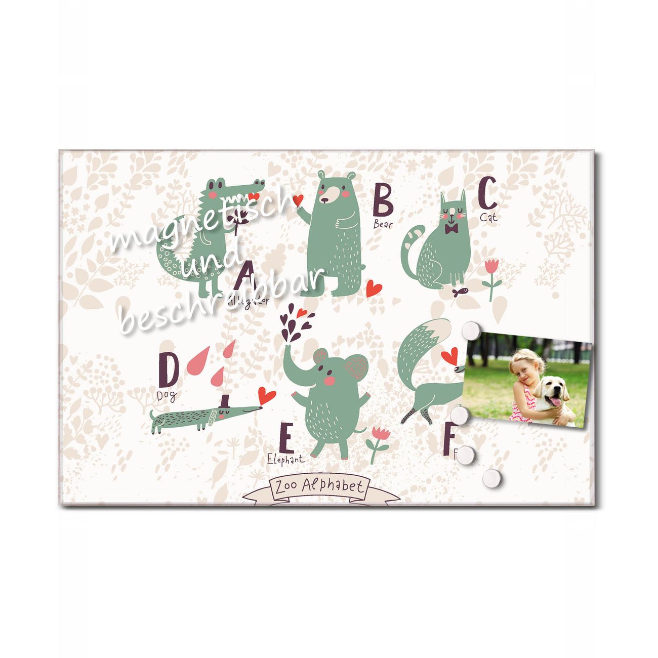 Glas Magnettafel im Querformat Zoo Alphabet