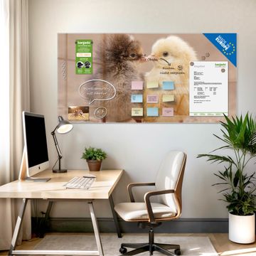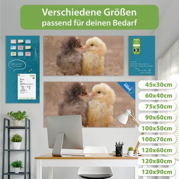 Die banjado Glas Magnettafel mit dem Motiv Motiv Zwei Küken verbindet Funktionalität mit Stil. Sie ersetzt das Zettelchaos durch klare Strukturen und bringt dabei eine warme, natürliche Atmosphäre in Ihr Zuhause. Ob im Büro, in der Küche oder im Eingangsbereich - dieses Design-Board zieht Blicke an und sorgt für Ordnung mit Charakter.