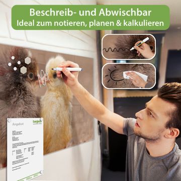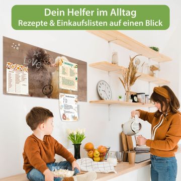 Auf der glatten Glasoberfläche lassen sich Termine, Rezepte oder Notizen ganz einfach mit Kreidestiften festhalten und rückstandslos entfernen. Starke Neodym-Magnete halten Ihre wichtigsten Erinnerungen sicher an Ort und Stelle. So entsteht Ihre ganz persönliche Ideenwand - jeden Tag neu.