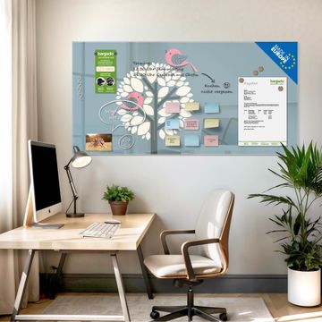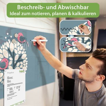 Die banjado Glas Magnettafel mit dem Motiv Motiv Zwei Rosa Vögel verbindet Funktionalität mit Stil. Sie ersetzt das Zettelchaos durch klare Strukturen und bringt dabei eine warme, natürliche Atmosphäre in Ihr Zuhause. Ob im Büro, in der Küche oder im Eingangsbereich - dieses Design-Board zieht Blicke an und sorgt für Ordnung mit Charakter.