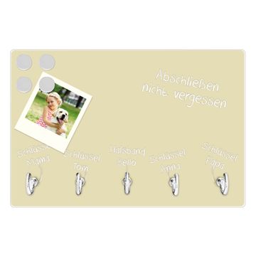 Glas Schlüsselbrett mit 5 Haken Einfarbig Beige