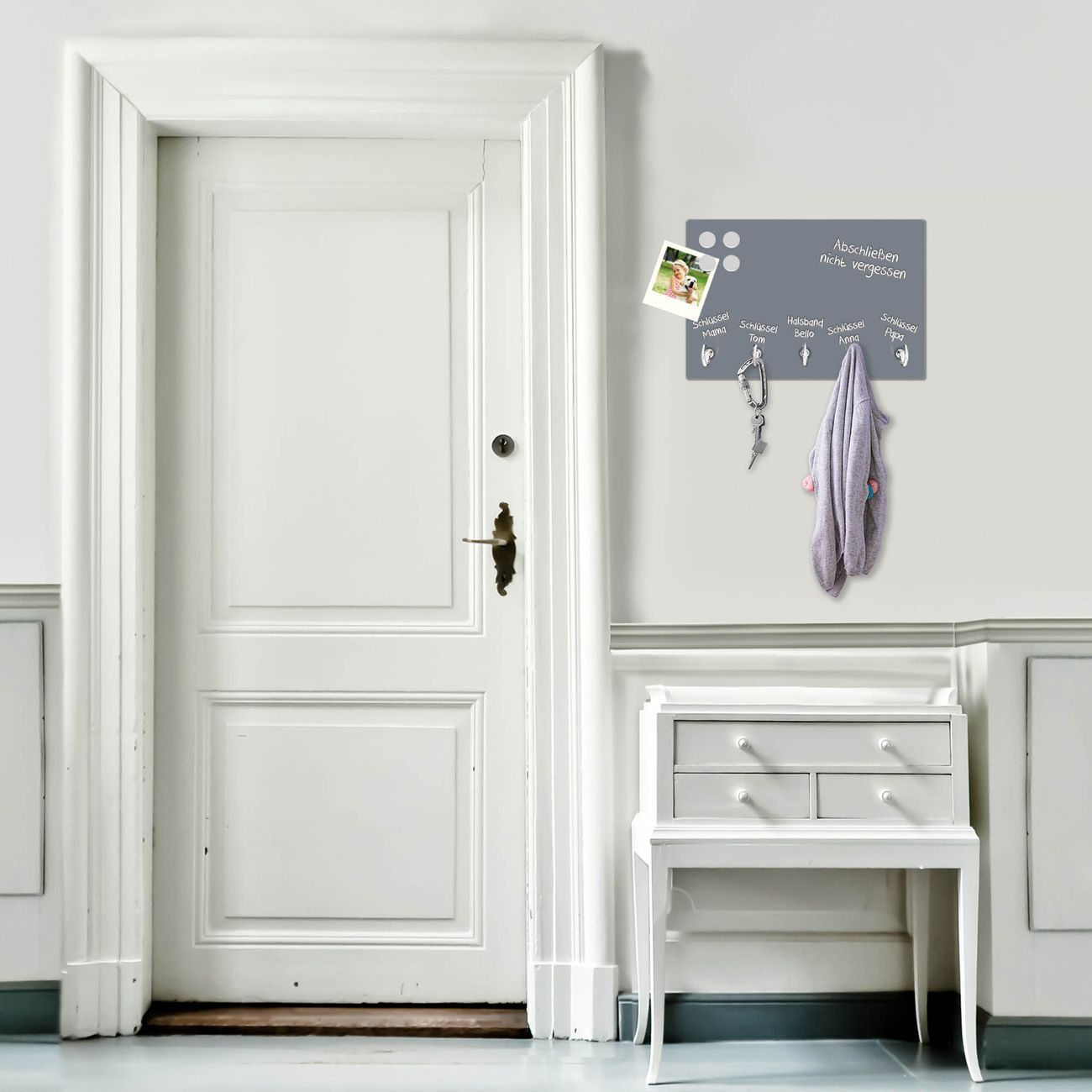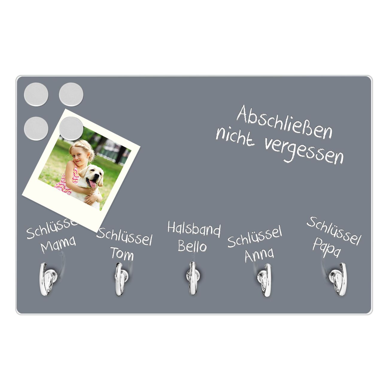 Glas Schlüsselbrett mit 5 Haken Einfarbig Silber Metallic