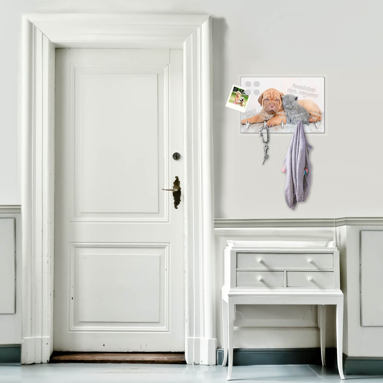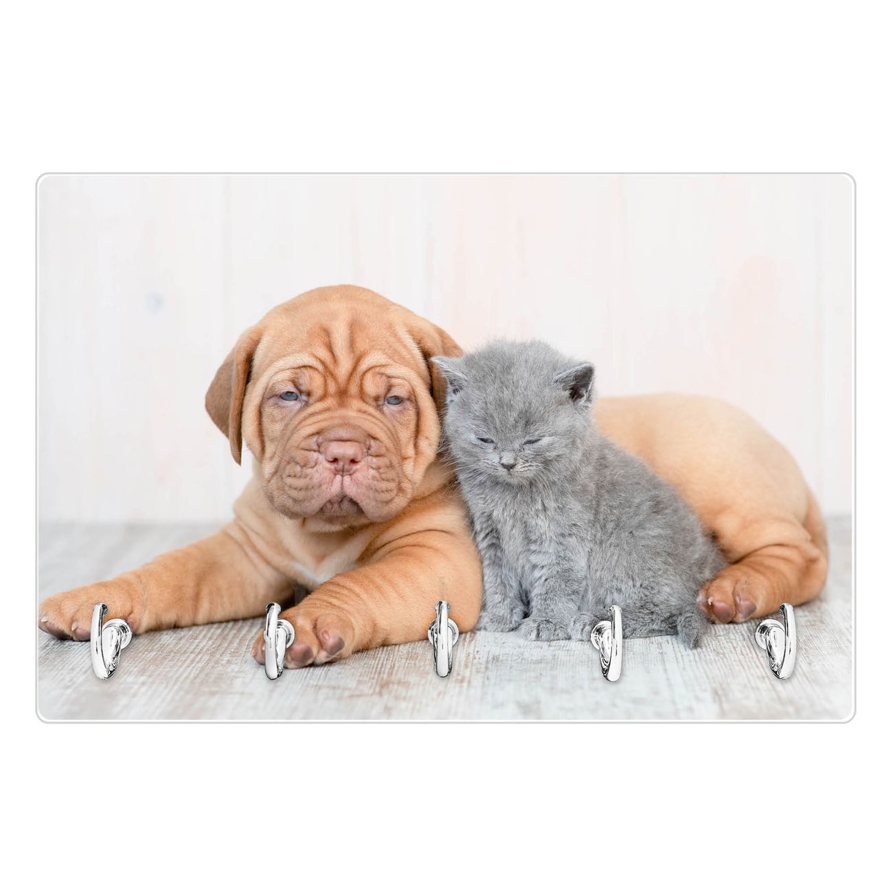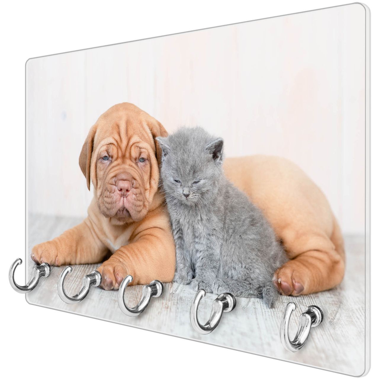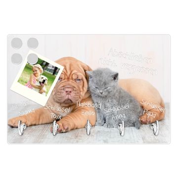 Glas Schlüsselbrett mit 5 Haken Hund und Katze