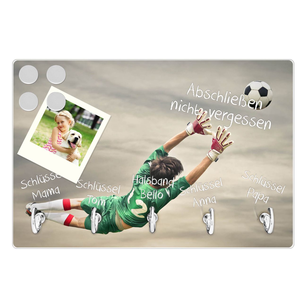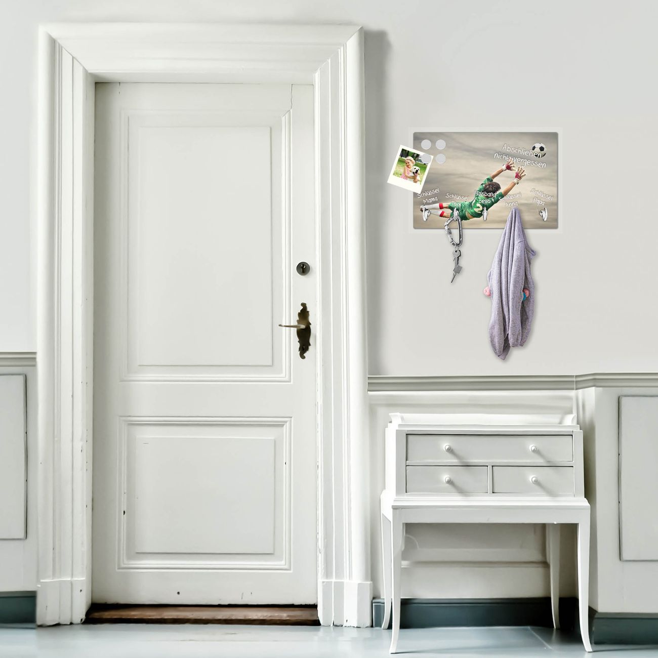 FUNKTION: Mit dem banjado Schlüsselbrett Abgewehrt hat Ihre Suche nach dem Schlüsselbund endlich ein Ende! Auf gesamt 5 Haken finden auch die größten Schlüssel ihren Platz. Durch den farbenfrohen Motivdruck ist das Schlüsselboard ein Blickfang in jeder Wohnung. DESIGN: Die Schlüsselleiste mit Motiv Abgewehrt hat ein sehr ansprechendes und ausgefallenes Design. Das Glasboard besteht aus einer gehärteten Glasscheibe mit dem Motiv Ihrer Wahl. Ihre neue Schlüsselaufbewahrung ist funktionell und ein optisches Highlight. DETAILS: Das Schlüsselbrett ist 30 x 20 x 4,5 CM (BxHxT). Das ganze Board besteht aus gehärtetem Sicherheitsglas, die Haken zur Selbstmontage präsentieren sich in Edelstahl-Optik. Für einen sicheren Halt erfolgt die Aufhängung an 2 vorgefertigten Haltern an der Rückseite. Das Montagematerial fügen wir bei. NUTZEN: Hier findet alles seinen Platz: Schlüsselbunde, Geschirrtücher, Hundeleinen oder Kinderjacken. Das Glas kann mit Kreidestiften bzw. Whiteboard-Marker beschrieben werden, mit extrastarken Neodym-Magneten können Sie auch Notizen anheften. BANJADO: Wir sind ein kleines Team aus dem Herzen von Sachsen und fertigen Ihre neue Schlüsselaufbewahrung von Hand an. Sie erhalten Handarbeit und keine preiswerte Importware. Wir hoffen, dass Ihnen unsere Idee zusagt, herzlichst das banjado Team.