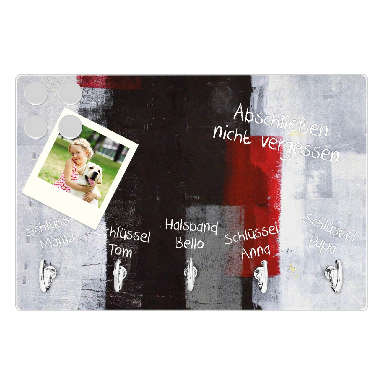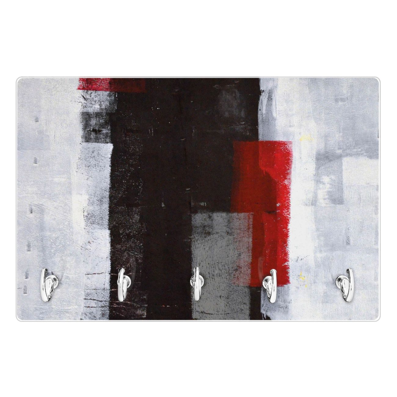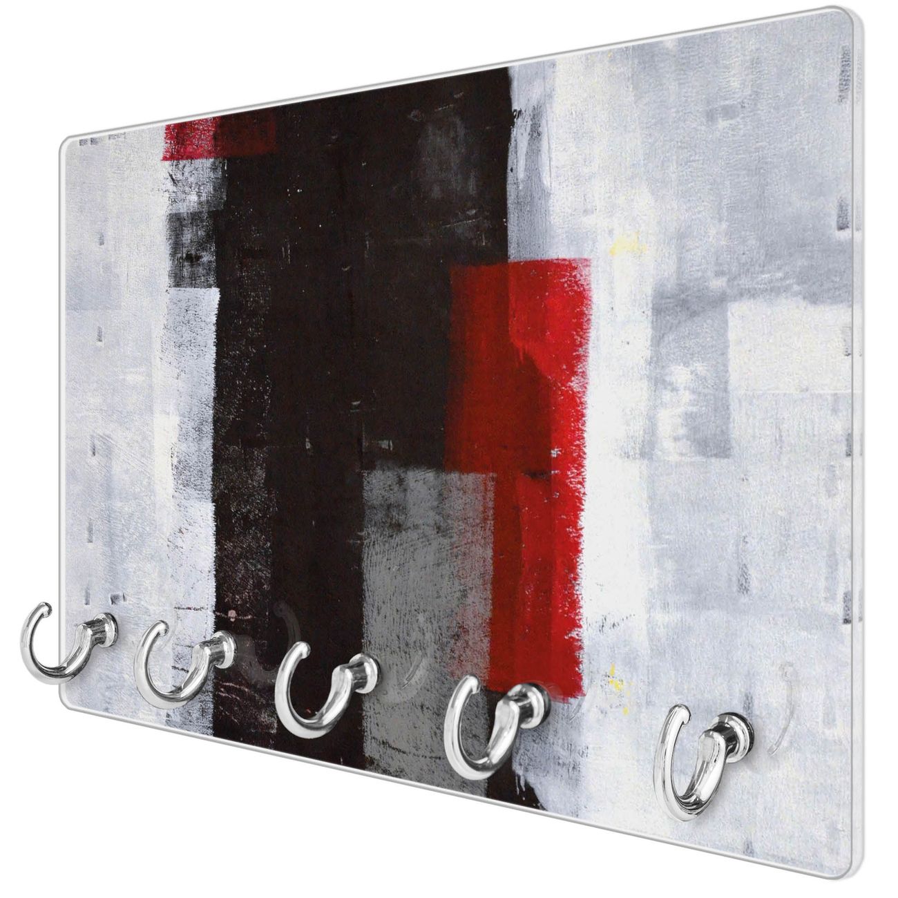Glas Schlüsselbrett mit 5 Haken Abstrakt Rot