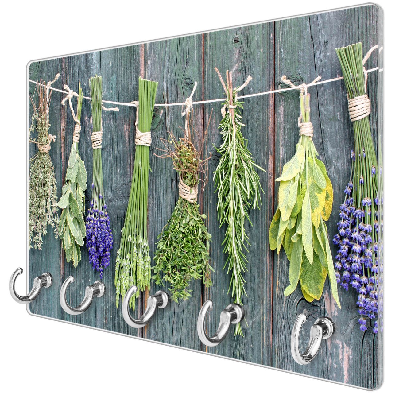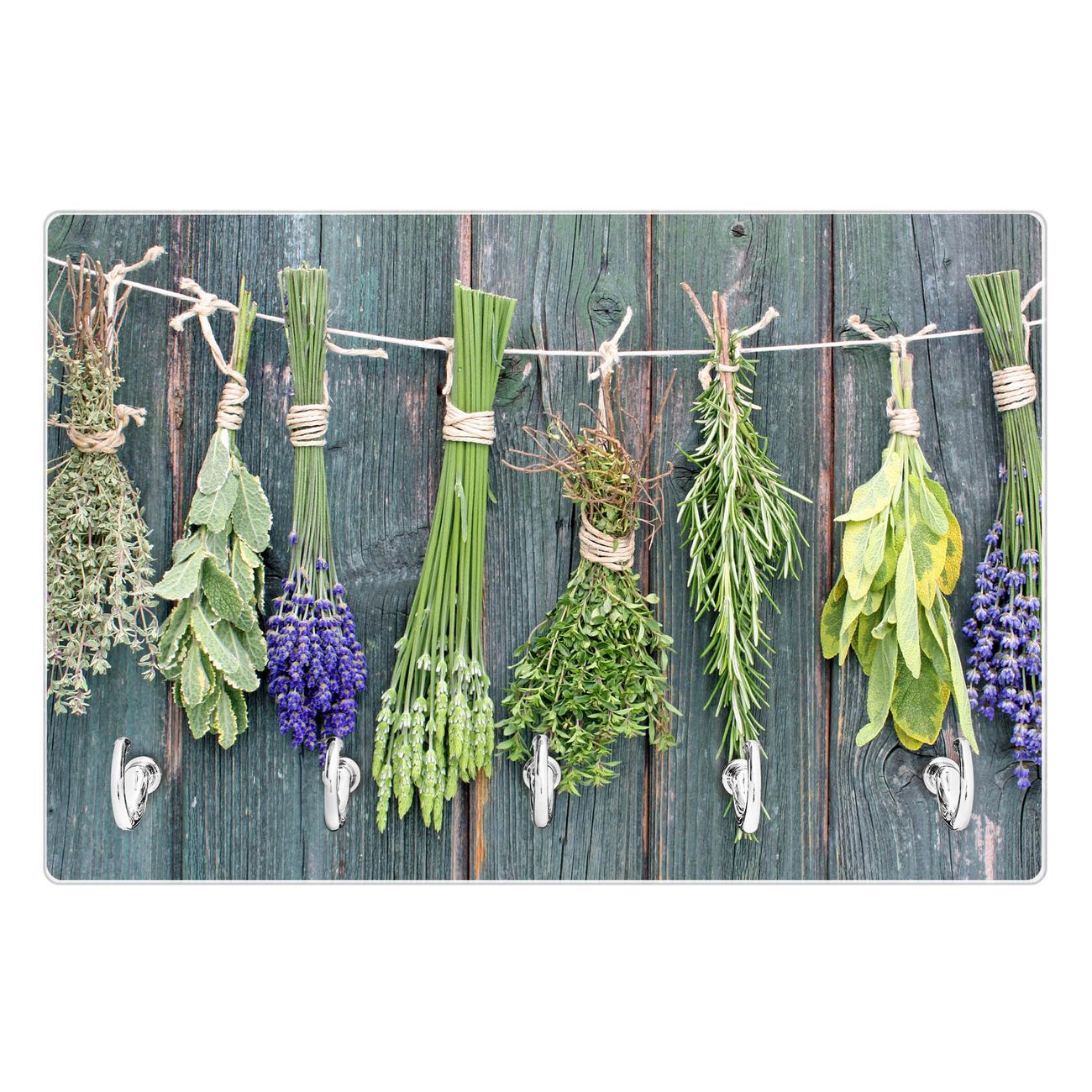 Glas Schlüsselbrett mit 5 Haken Acht Kräuter