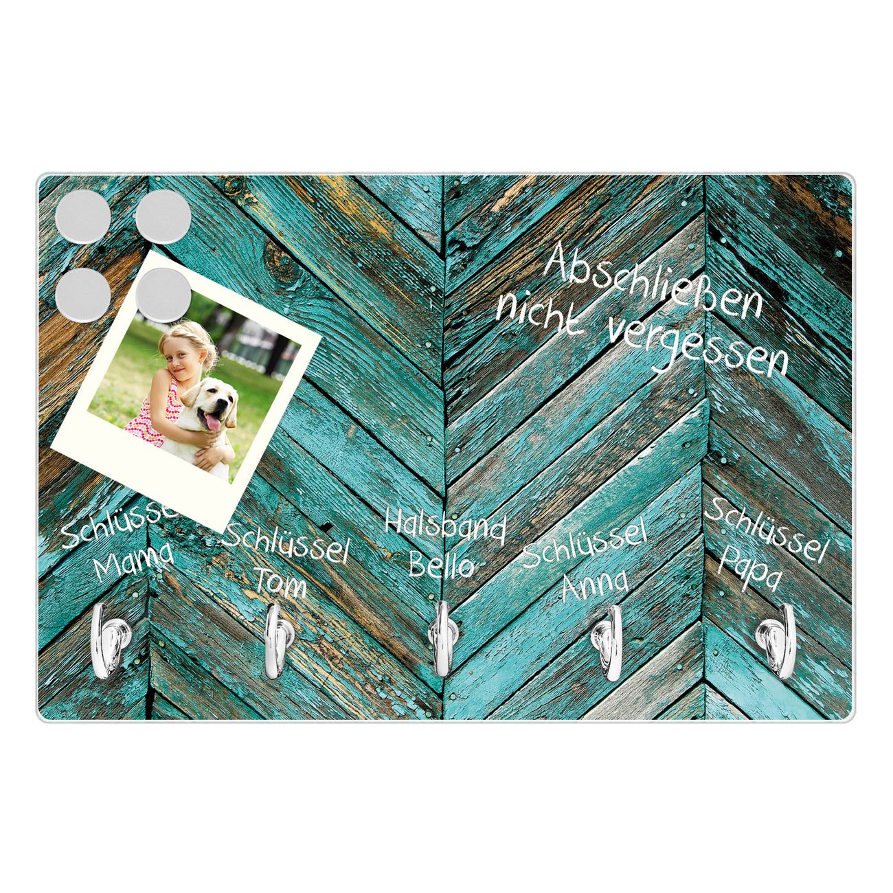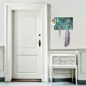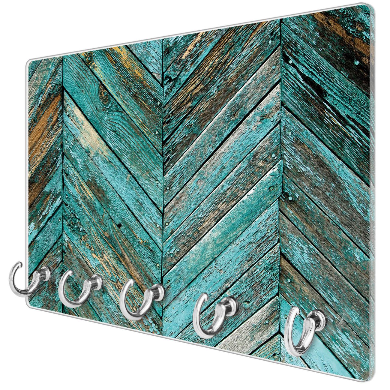 Glas Schlüsselbrett mit 5 Haken Altes Holz Blau