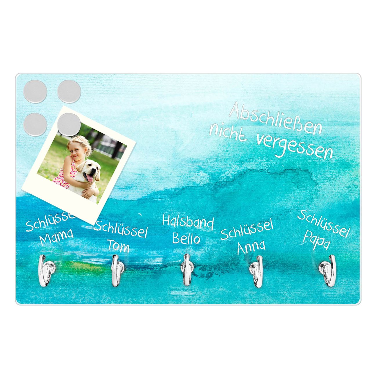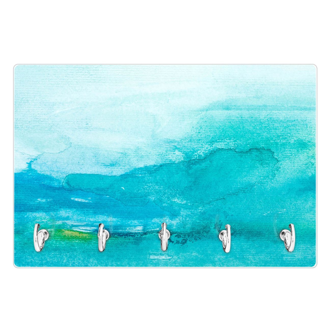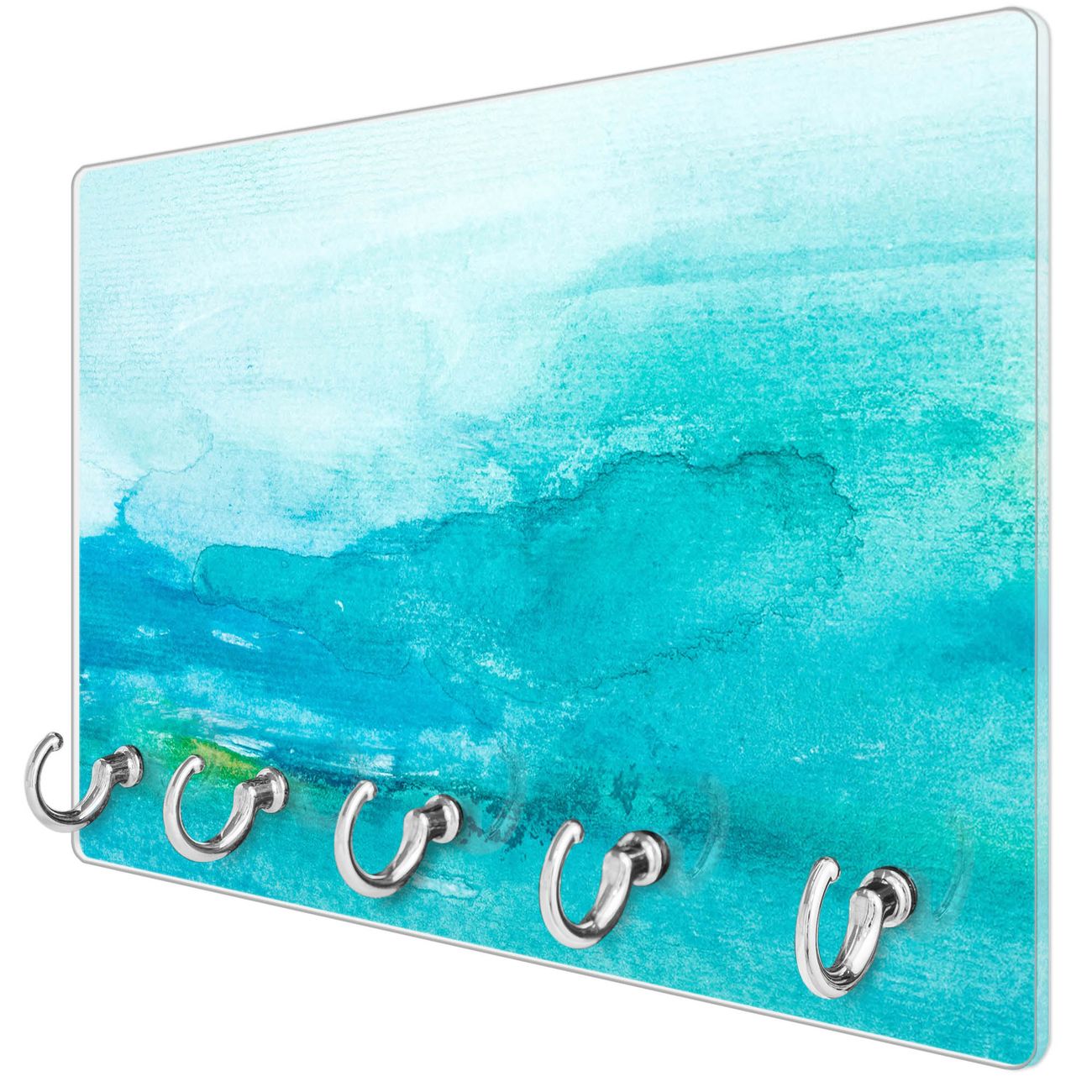 Glas Schlüsselbrett mit 5 Haken Aquarell Blau
