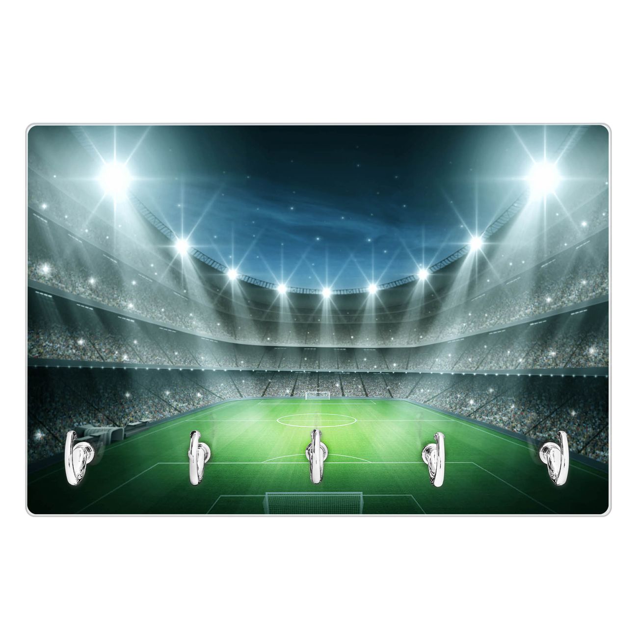 FUNKTION: Mit dem banjado Schlüsselbrett Arena hat Ihre Suche nach dem Schlüsselbund endlich ein Ende! Auf gesamt 5 Haken finden auch die größten Schlüssel ihren Platz. Durch den farbenfrohen Motivdruck ist das Schlüsselboard ein Blickfang in jeder Wohnung. DESIGN: Die Schlüsselleiste mit Motiv Arena hat ein sehr ansprechendes und ausgefallenes Design. Das Glasboard besteht aus einer gehärteten Glasscheibe mit dem Motiv Ihrer Wahl. Ihre neue Schlüsselaufbewahrung ist funktionell und ein optisches Highlight. DETAILS: Das Schlüsselbrett ist 30 x 20 x 4,5 CM (BxHxT). Das ganze Board besteht aus gehärtetem Sicherheitsglas, die Haken zur Selbstmontage präsentieren sich in Edelstahl-Optik. Für einen sicheren Halt erfolgt die Aufhängung an 2 vorgefertigten Haltern an der Rückseite. Das Montagematerial fügen wir bei. NUTZEN: Hier findet alles seinen Platz: Schlüsselbunde, Geschirrtücher, Hundeleinen oder Kinderjacken. Das Glas kann mit Kreidestiften bzw. Whiteboard-Marker beschrieben werden, mit extrastarken Neodym-Magneten können Sie auch Notizen anheften. BANJADO: Wir sind ein kleines Team aus dem Herzen von Sachsen und fertigen Ihre neue Schlüsselaufbewahrung von Hand an. Sie erhalten Handarbeit und keine preiswerte Importware. Wir hoffen, dass Ihnen unsere Idee zusagt, herzlichst das banjado Team.