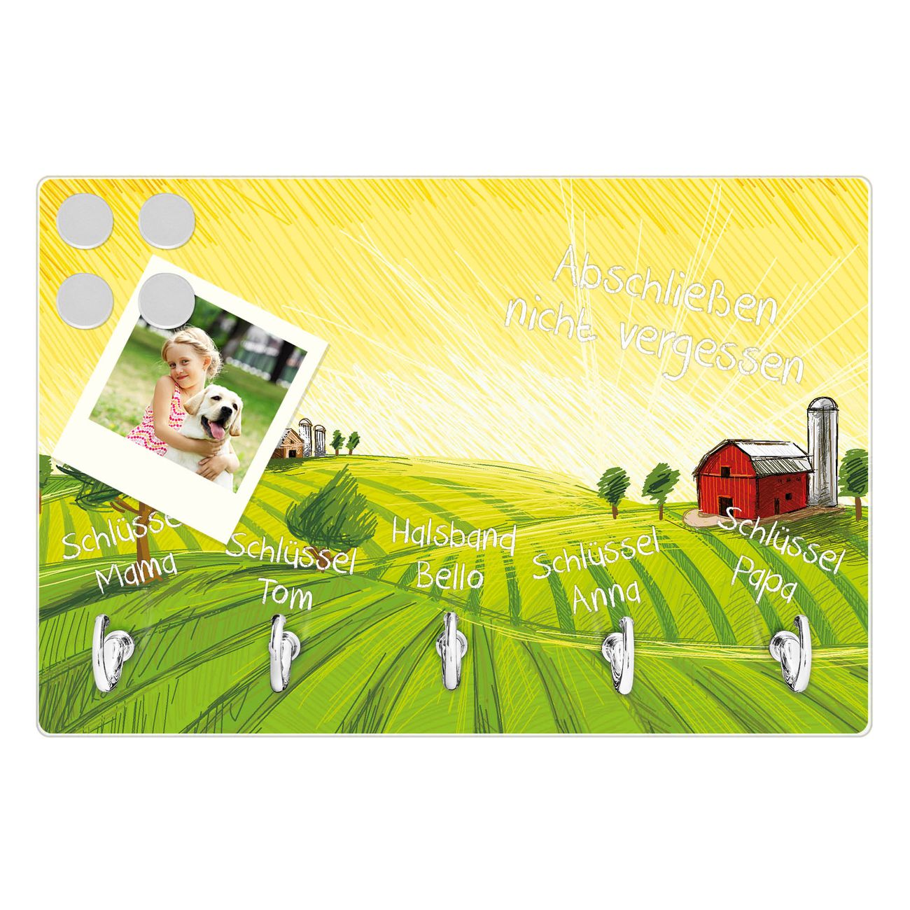 Glas Schlüsselbrett mit 5 Haken Auf dem Land