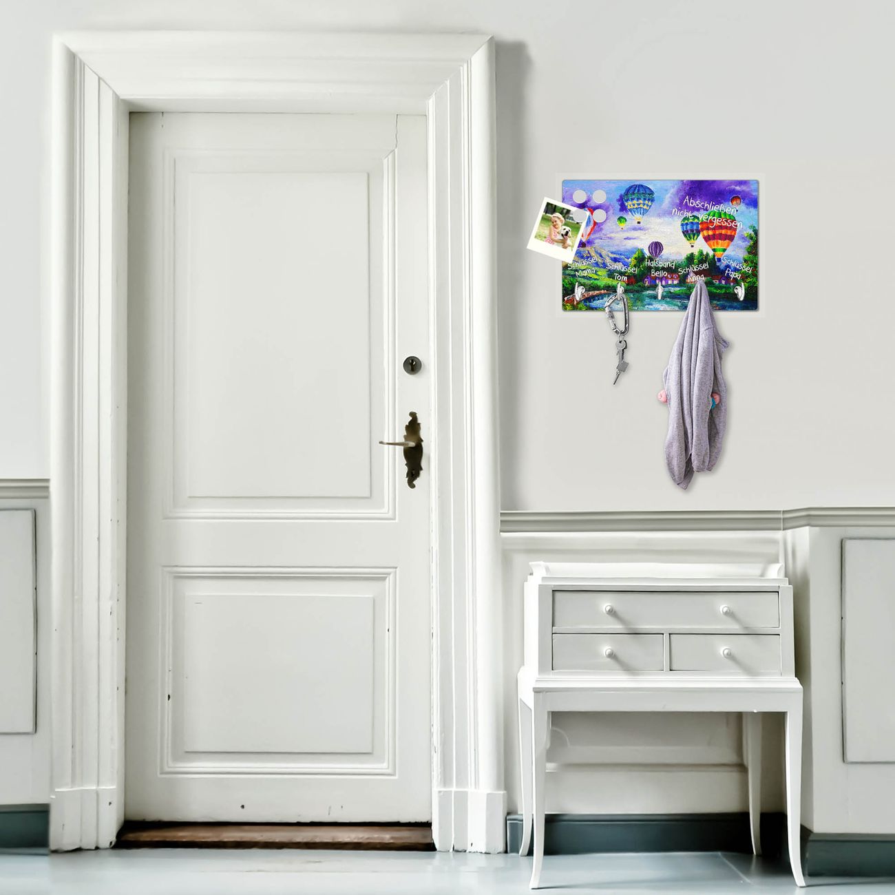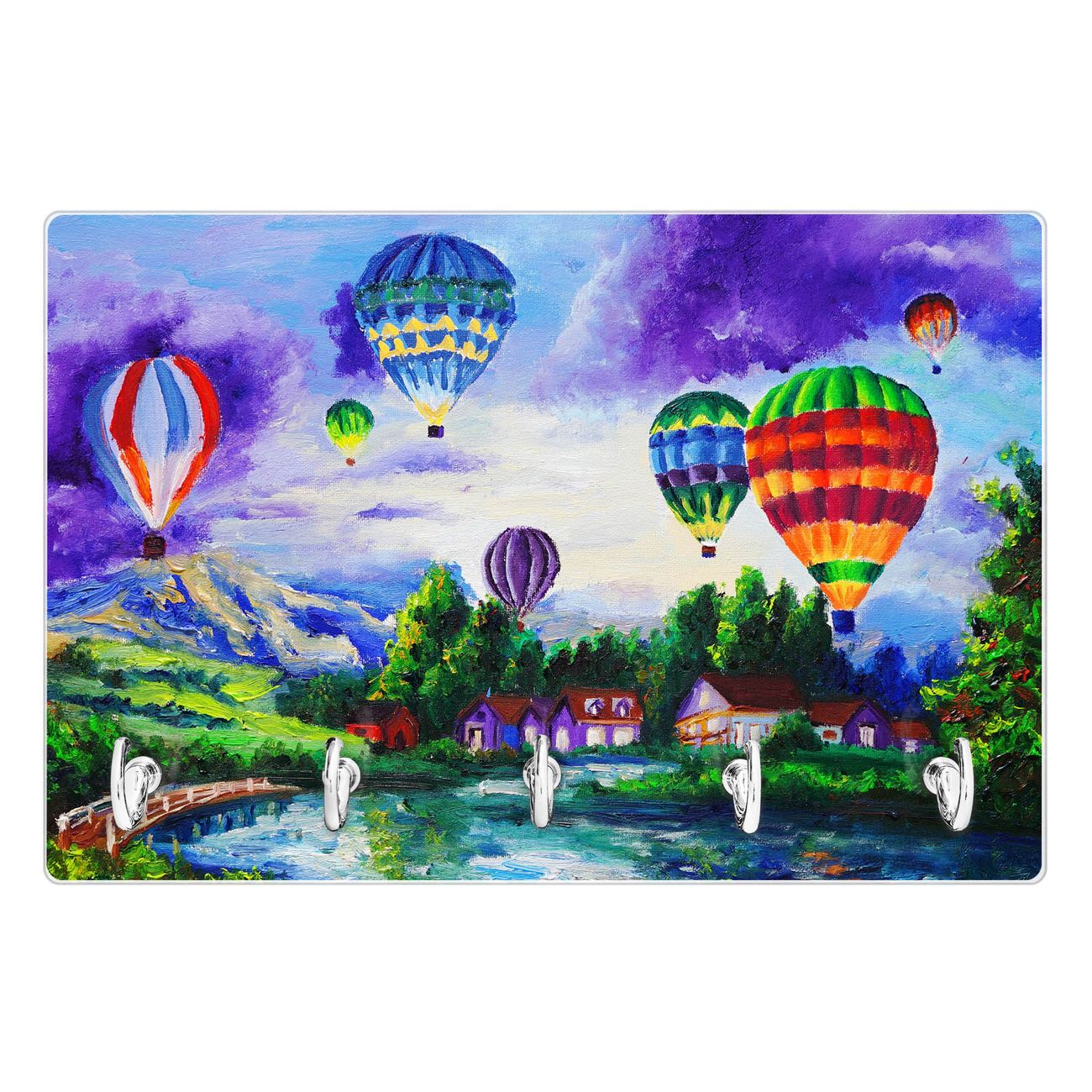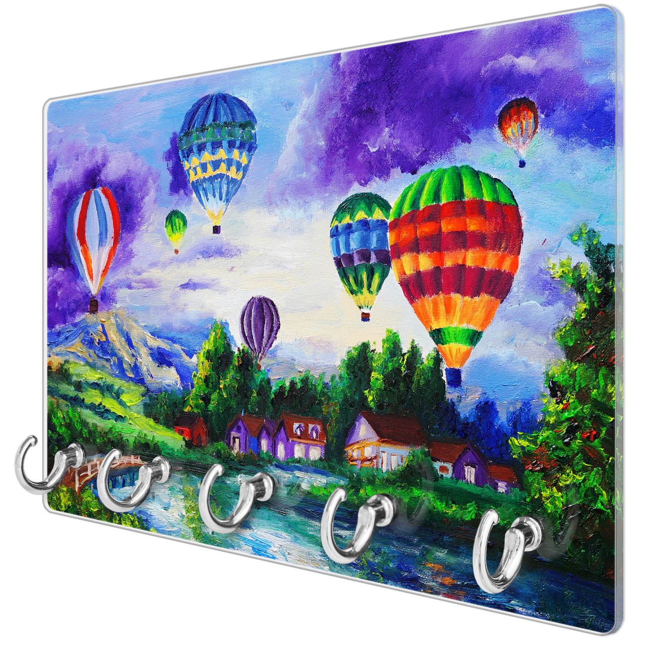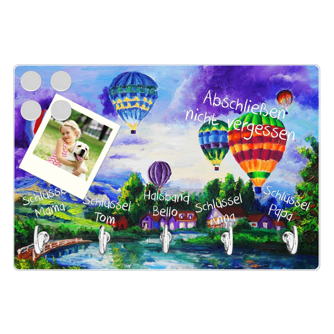 Glas Schlüsselbrett mit 5 Haken Ballons In Lila Wolken