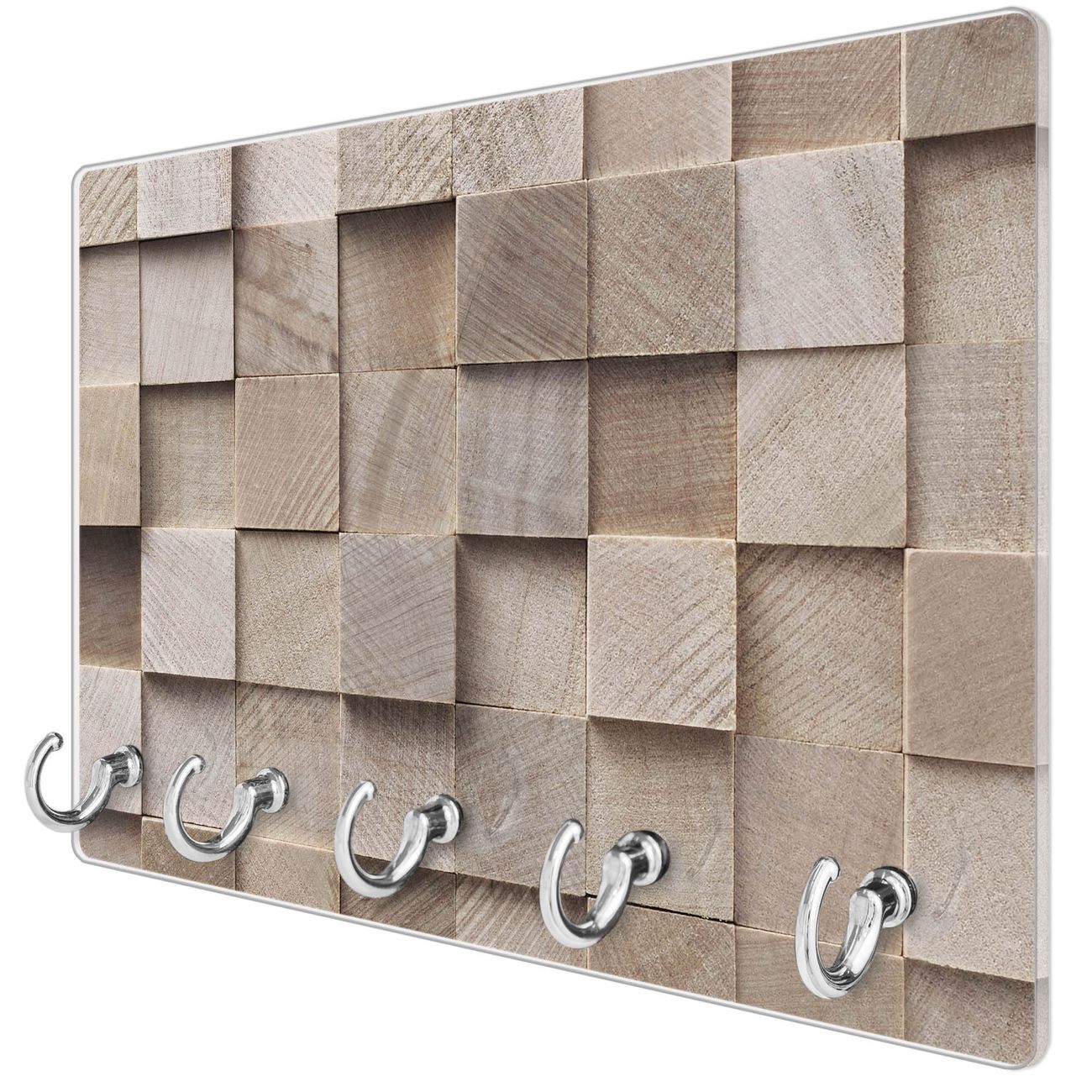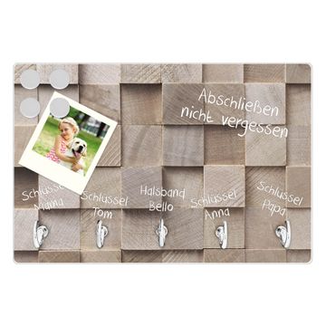 Glas Schlüsselbrett mit 5 Haken Bauklötze Relief