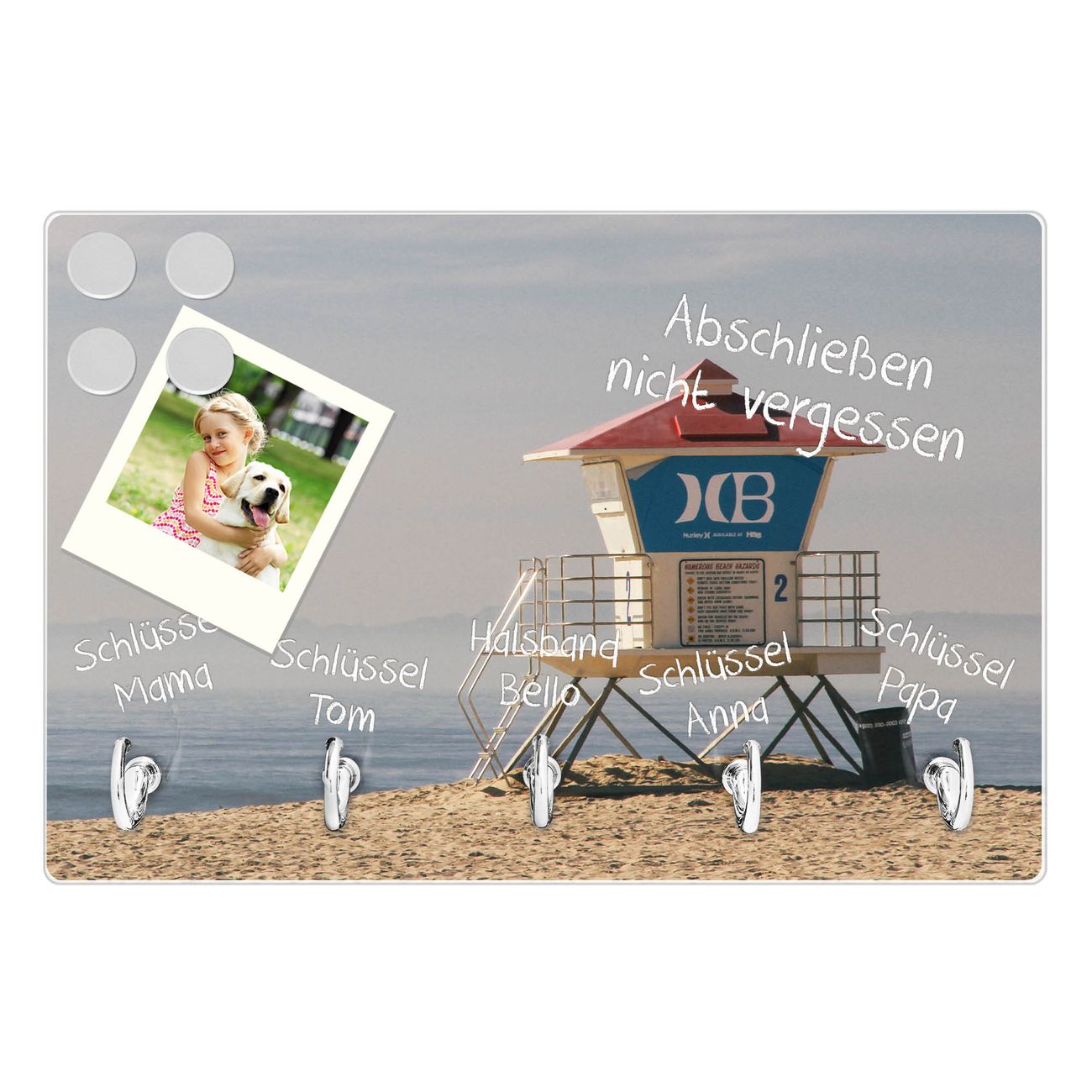 Glas Schlüsselbrett mit 5 Haken Beach Section