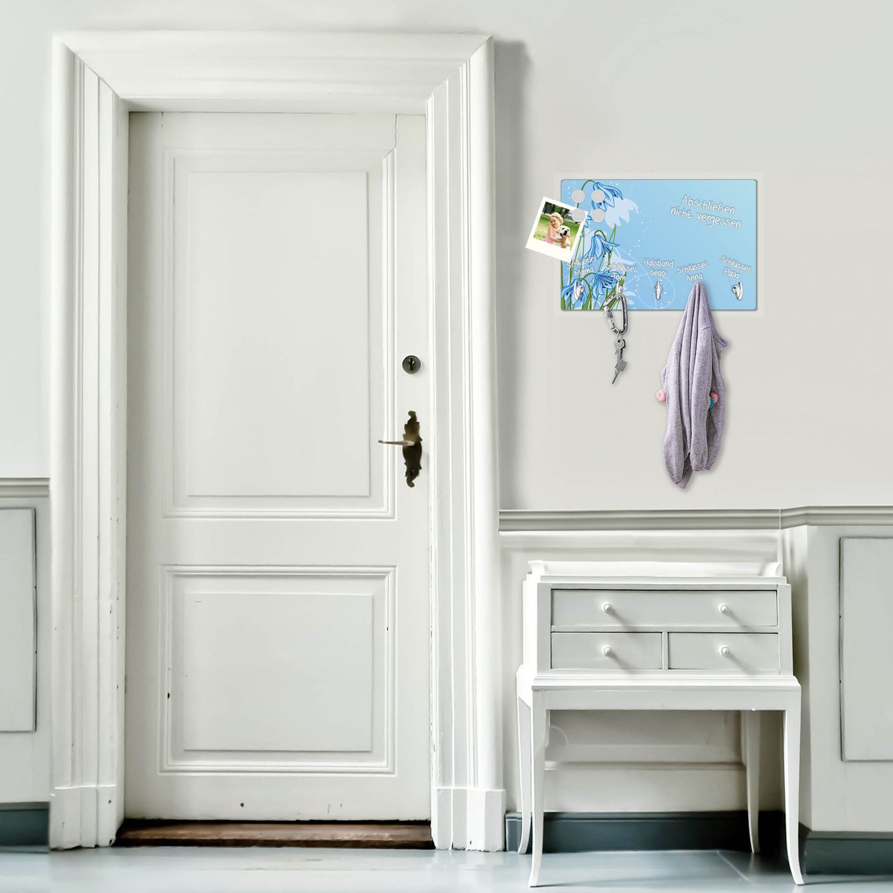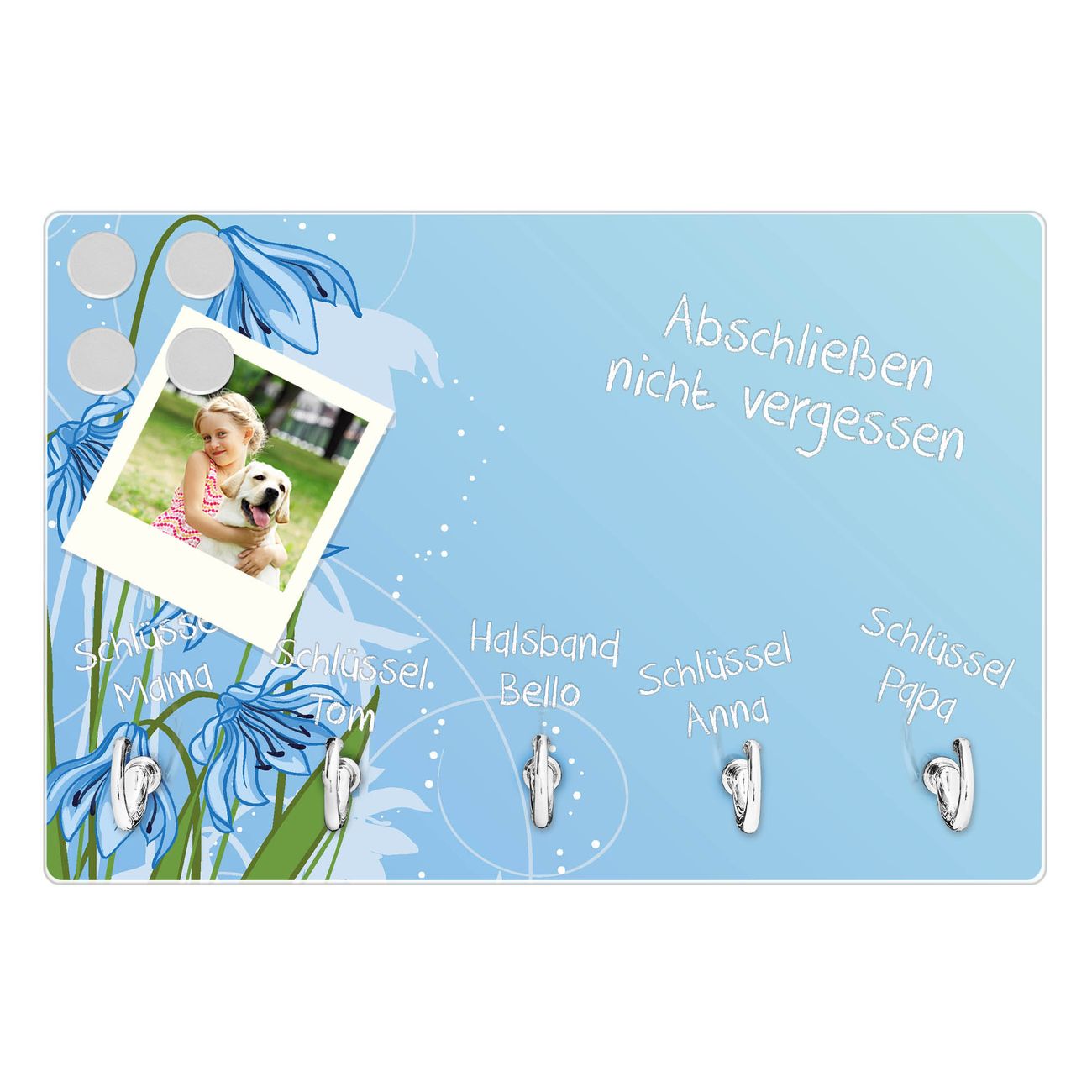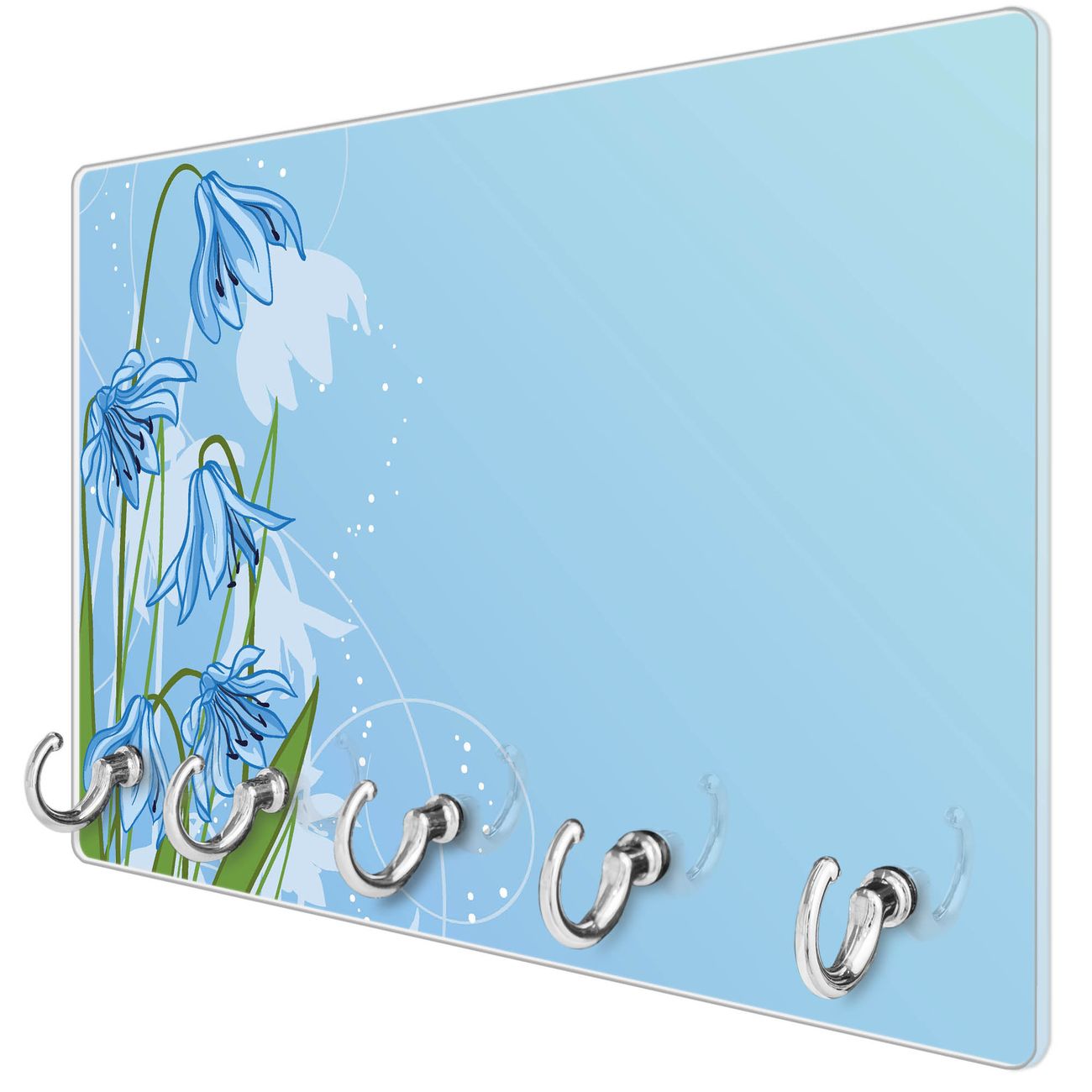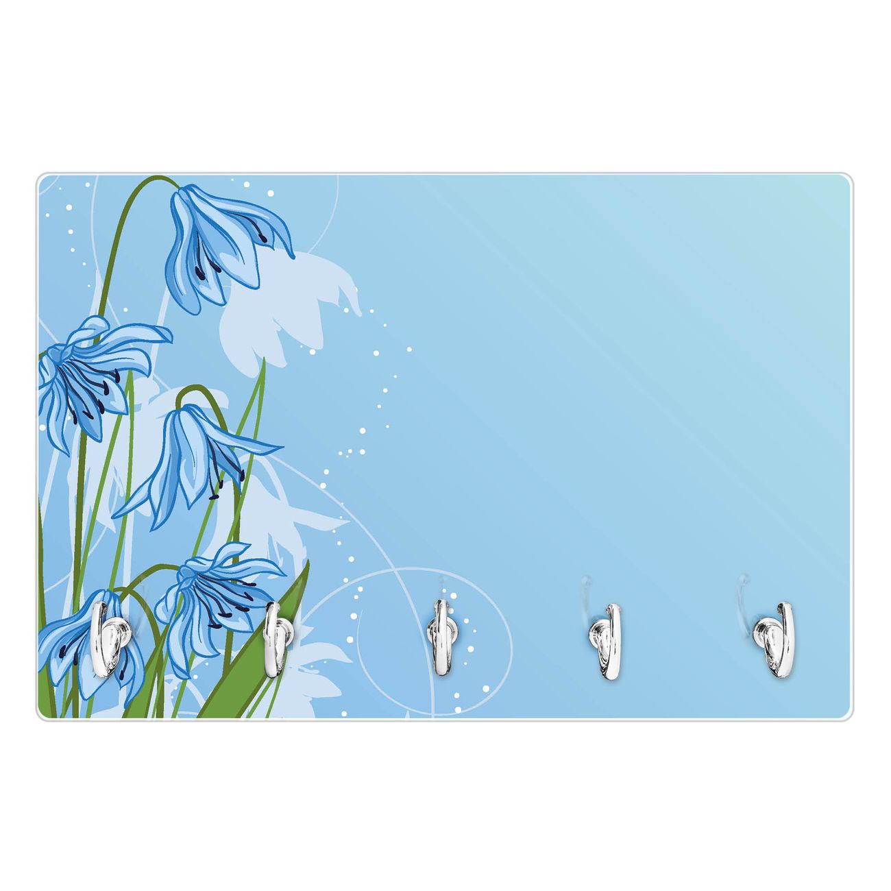 Glas Schlüsselbrett mit 5 Haken Bergblaulilie