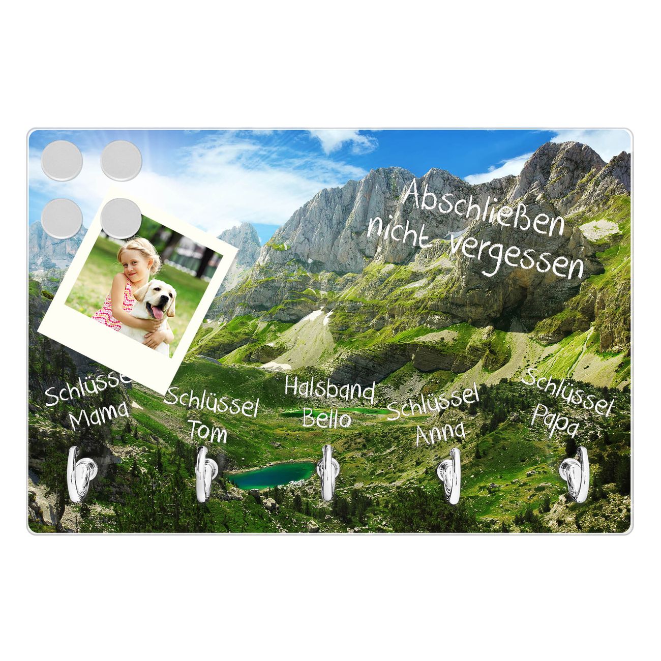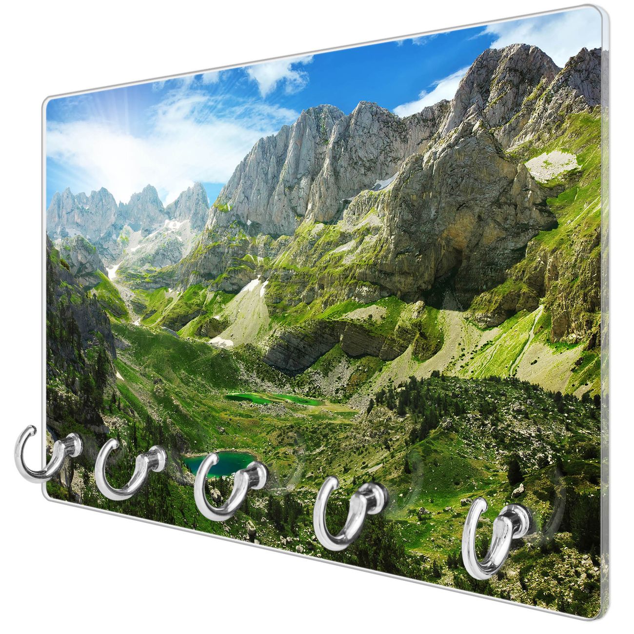 Glas Schlüsselbrett mit 5 Haken Bergsee Alpen