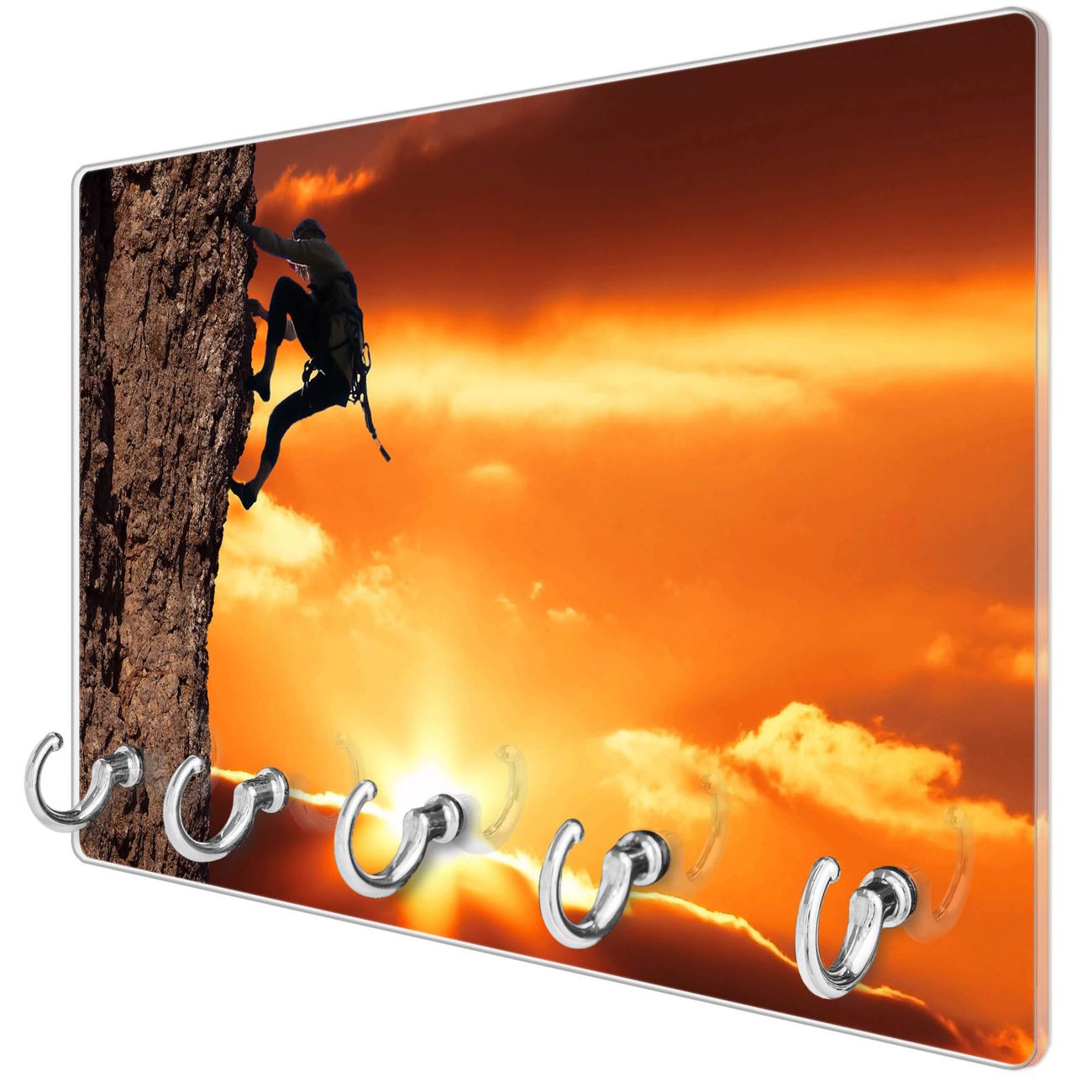 Glas Schlüsselbrett mit 5 Haken Bergsteiger
