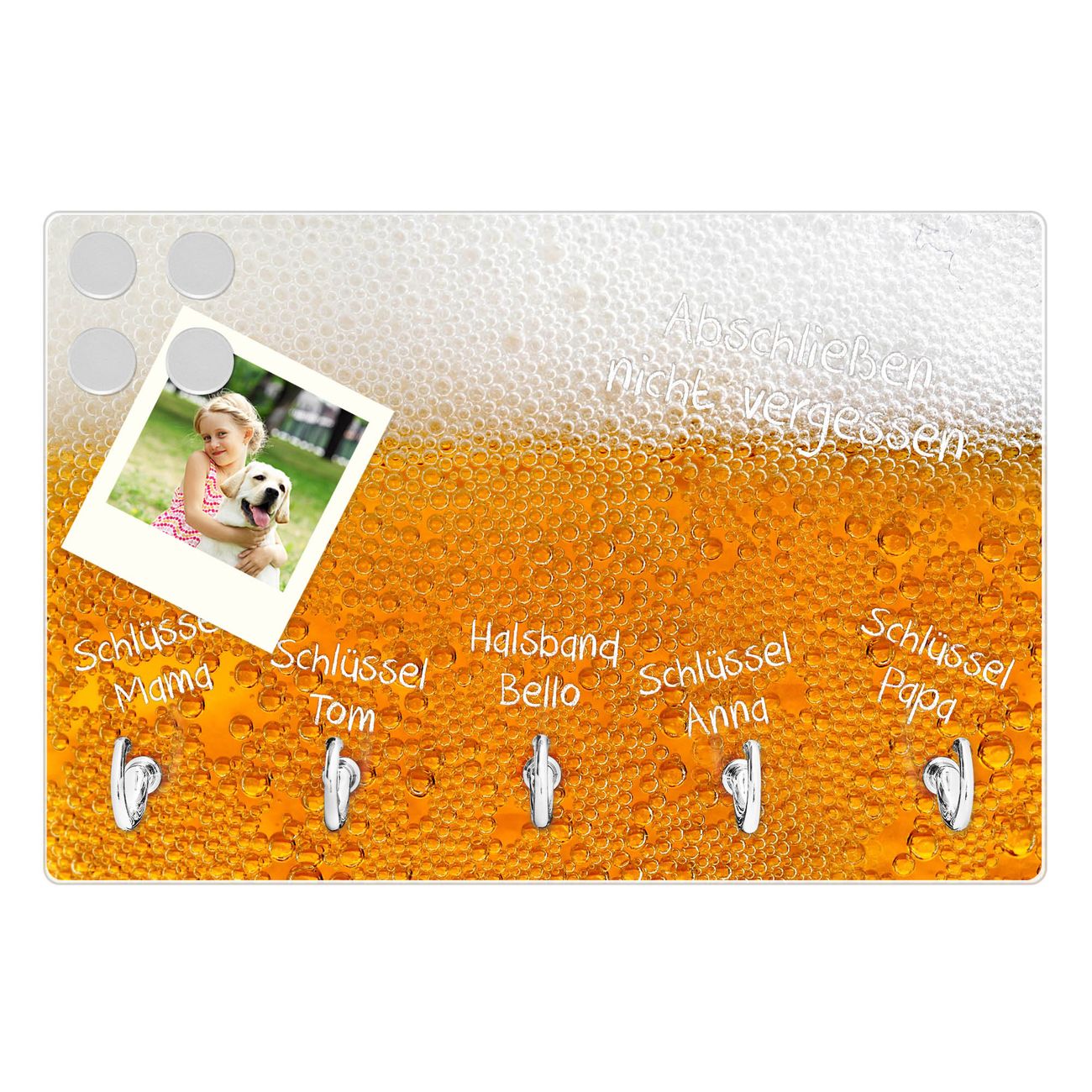 FUNKTION: Mit dem banjado Schlüsselbrett Bier hat Ihre Suche nach dem Schlüsselbund endlich ein Ende! Auf gesamt 5 Haken finden auch die größten Schlüssel ihren Platz. Durch den farbenfrohen Motivdruck ist das Schlüsselboard ein Blickfang in jeder Wohnung. DESIGN: Die Schlüsselleiste mit Motiv Bier hat ein sehr ansprechendes und ausgefallenes Design. Das Glasboard besteht aus einer gehärteten Glasscheibe mit dem Motiv Ihrer Wahl. Ihre neue Schlüsselaufbewahrung ist funktionell und ein optisches Highlight. DETAILS: Das Schlüsselbrett ist 30 x 20 x 4,5 CM (BxHxT). Das ganze Board besteht aus gehärtetem Sicherheitsglas, die Haken zur Selbstmontage präsentieren sich in Edelstahl-Optik. Für einen sicheren Halt erfolgt die Aufhängung an 2 vorgefertigten Haltern an der Rückseite. Das Montagematerial fügen wir bei. NUTZEN: Hier findet alles seinen Platz: Schlüsselbunde, Geschirrtücher, Hundeleinen oder Kinderjacken. Das Glas kann mit Kreidestiften bzw. Whiteboard-Marker beschrieben werden, mit extrastarken Neodym-Magneten können Sie auch Notizen anheften. BANJADO: Wir sind ein kleines Team aus dem Herzen von Sachsen und fertigen Ihre neue Schlüsselaufbewahrung von Hand an. Sie erhalten Handarbeit und keine preiswerte Importware. Wir hoffen, dass Ihnen unsere Idee zusagt, herzlichst das banjado Team.