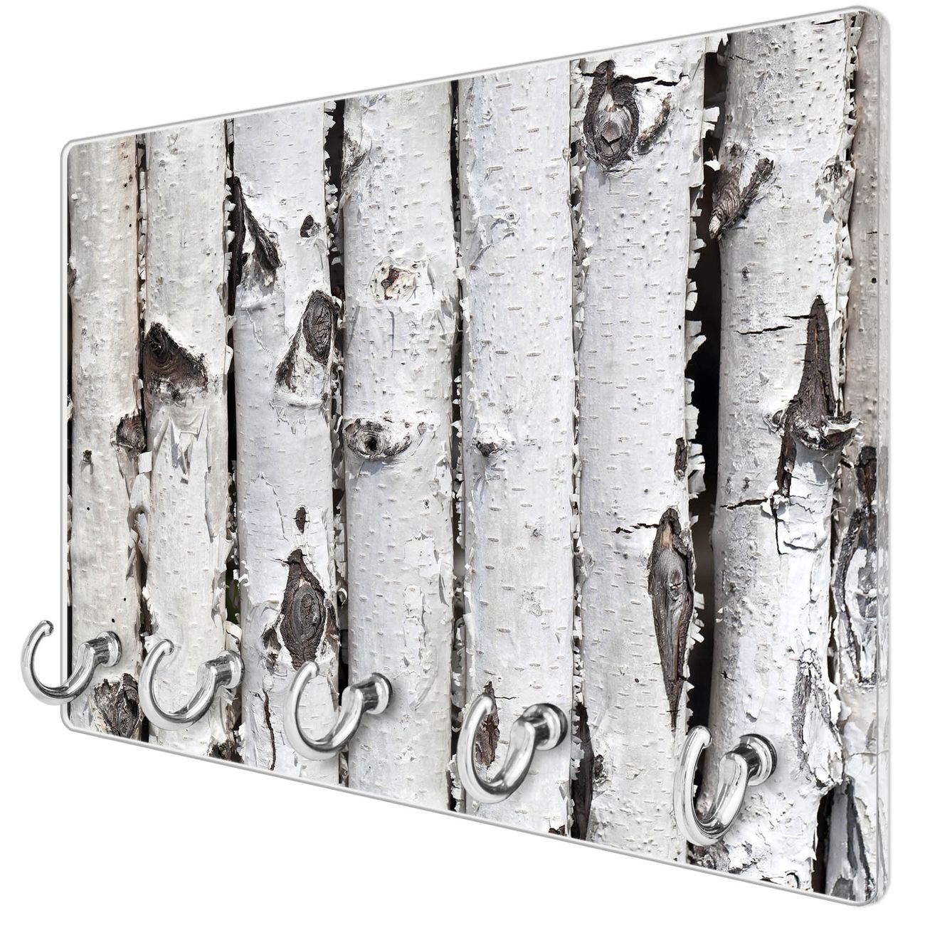 Glas Schlüsselbrett mit 5 Haken Birkenrinde