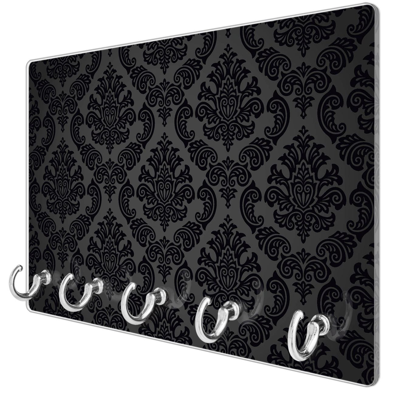 Glas Schlüsselbrett mit 5 Haken Black Deluxe