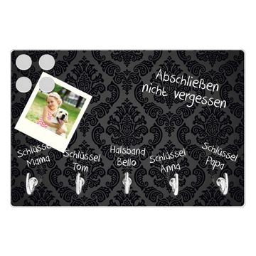 FUNKTION: Mit dem banjado Schlüsselbrett Black Deluxe hat Ihre Suche nach dem Schlüsselbund endlich ein Ende! Auf gesamt 5 Haken finden auch die größten Schlüssel ihren Platz. Durch den farbenfrohen Motivdruck ist das Schlüsselboard ein Blickfang in jeder Wohnung. DESIGN: Die Schlüsselleiste mit Motiv Black Deluxe hat ein sehr ansprechendes und ausgefallenes Design. Das Glasboard besteht aus einer gehärteten Glasscheibe mit dem Motiv Ihrer Wahl. Ihre neue Schlüsselaufbewahrung ist funktionell und ein optisches Highlight. DETAILS: Das Schlüsselbrett ist 30 x 20 x 4,5 CM (BxHxT). Das ganze Board besteht aus gehärtetem Sicherheitsglas, die Haken zur Selbstmontage präsentieren sich in Edelstahl-Optik. Für einen sicheren Halt erfolgt die Aufhängung an 2 vorgefertigten Haltern an der Rückseite. Das Montagematerial fügen wir bei. NUTZEN: Hier findet alles seinen Platz: Schlüsselbunde, Geschirrtücher, Hundeleinen oder Kinderjacken. Das Glas kann mit Kreidestiften bzw. Whiteboard-Marker beschrieben werden, mit extrastarken Neodym-Magneten können Sie auch Notizen anheften. BANJADO: Wir sind ein kleines Team aus dem Herzen von Sachsen und fertigen Ihre neue Schlüsselaufbewahrung von Hand an. Sie erhalten Handarbeit und keine preiswerte Importware. Wir hoffen, dass Ihnen unsere Idee zusagt, herzlichst das banjado Team.
