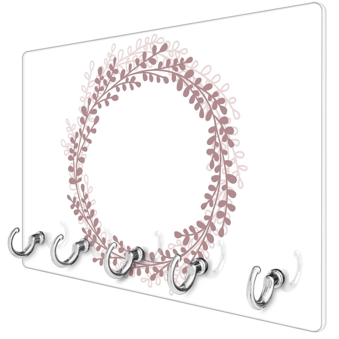 Glas Schlüsselbrett mit 5 Haken Blätterkranz
