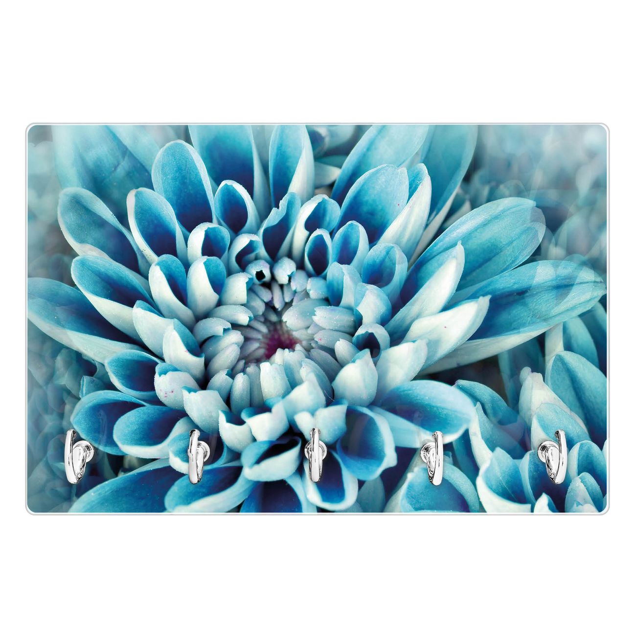 Glas Schlüsselbrett mit 5 Haken Blaue Blüten