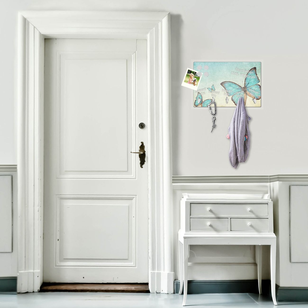 Glas Schlüsselbrett mit 5 Haken Blaue Schmetterlinge