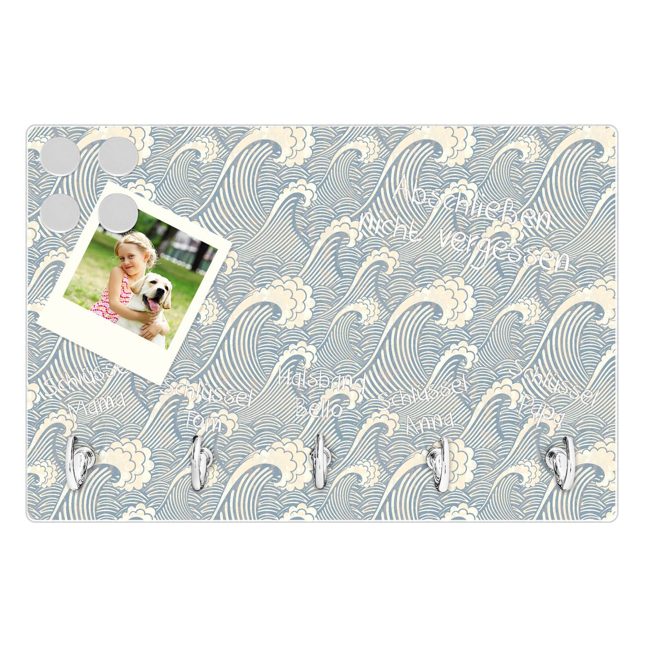 Glas Schlüsselbrett mit 5 Haken Blaue Wellen