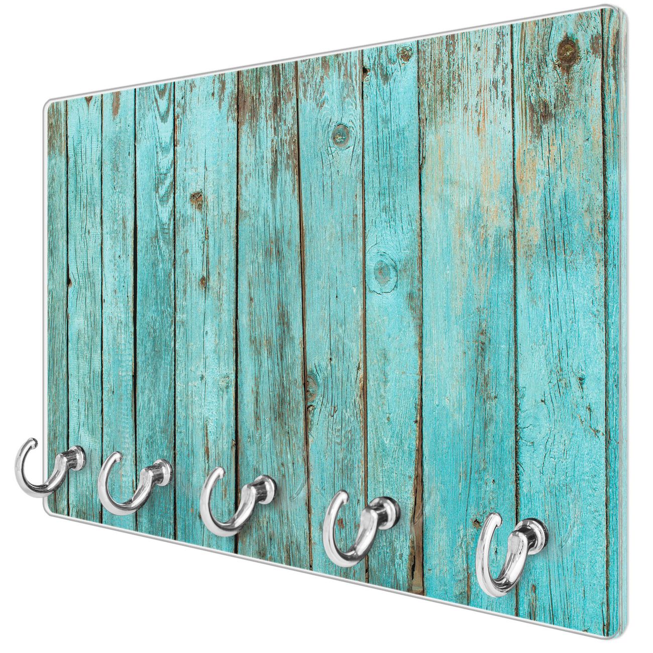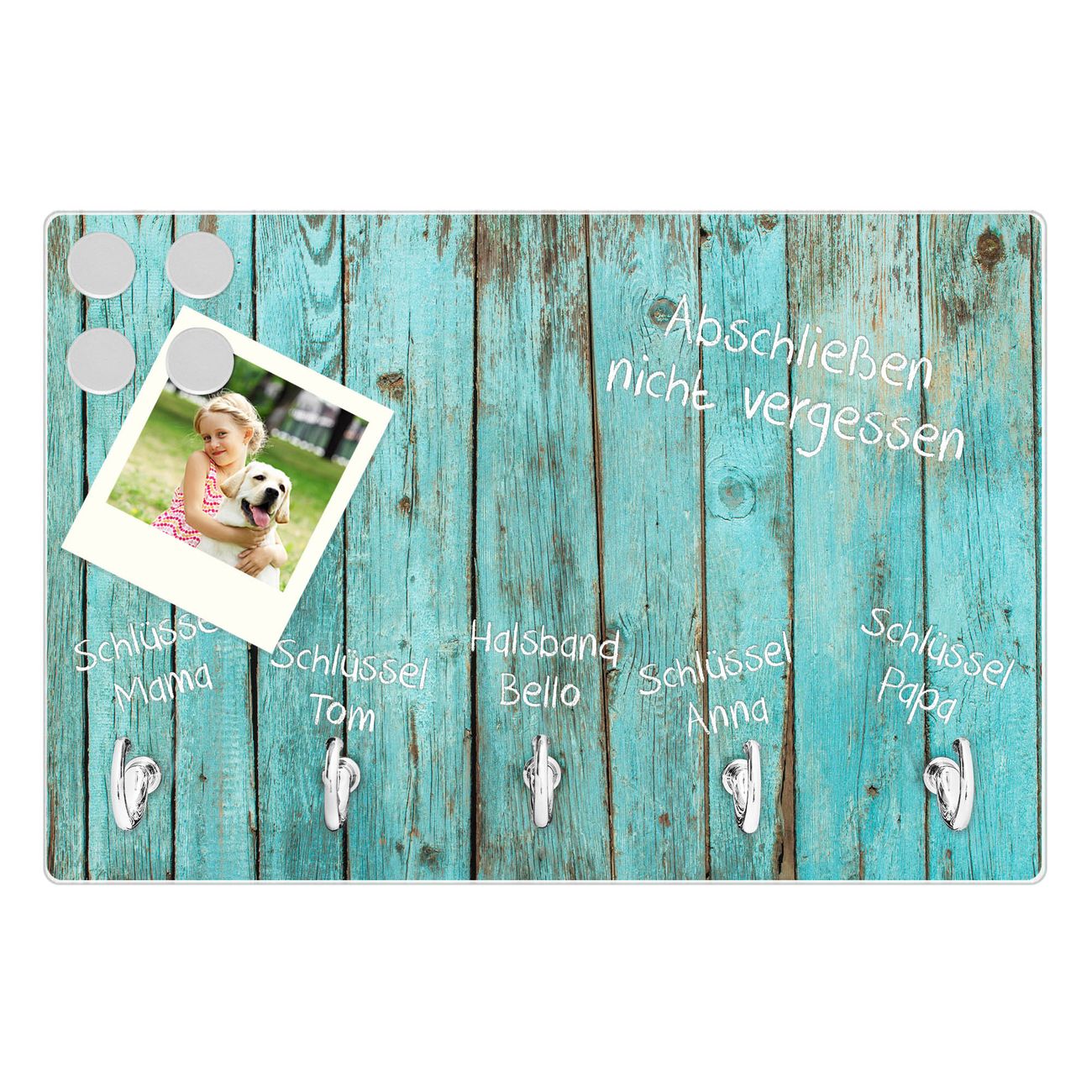 Glas Schlüsselbrett mit 5 Haken Blaues Holz