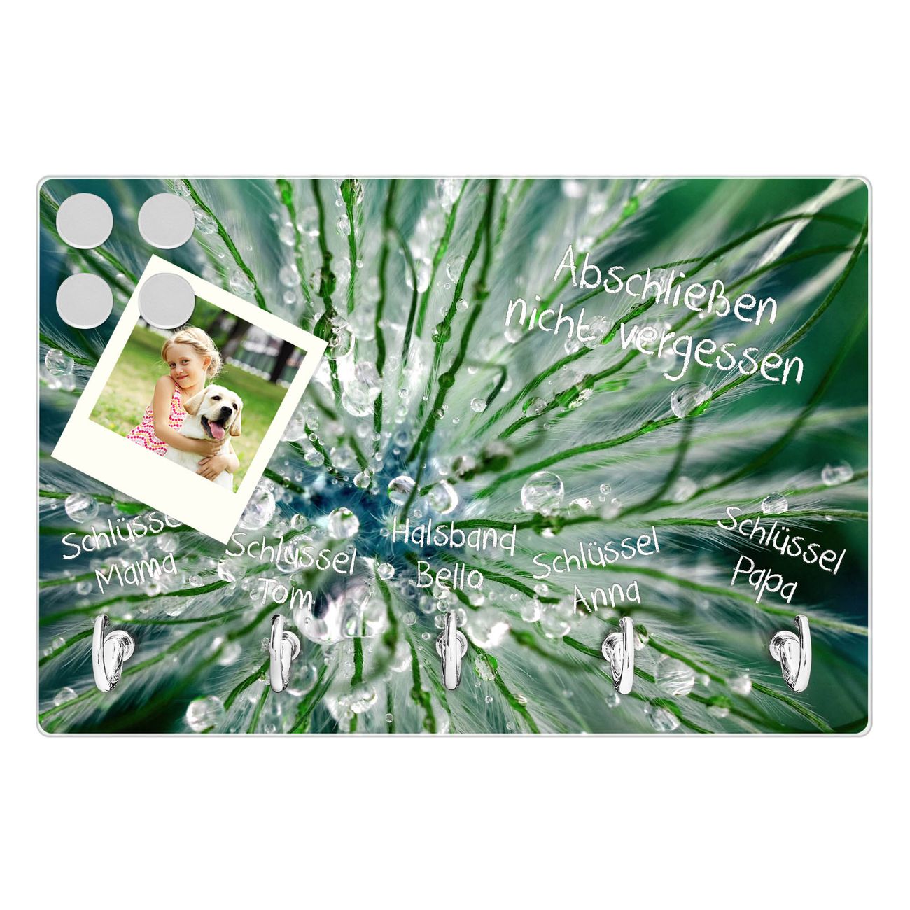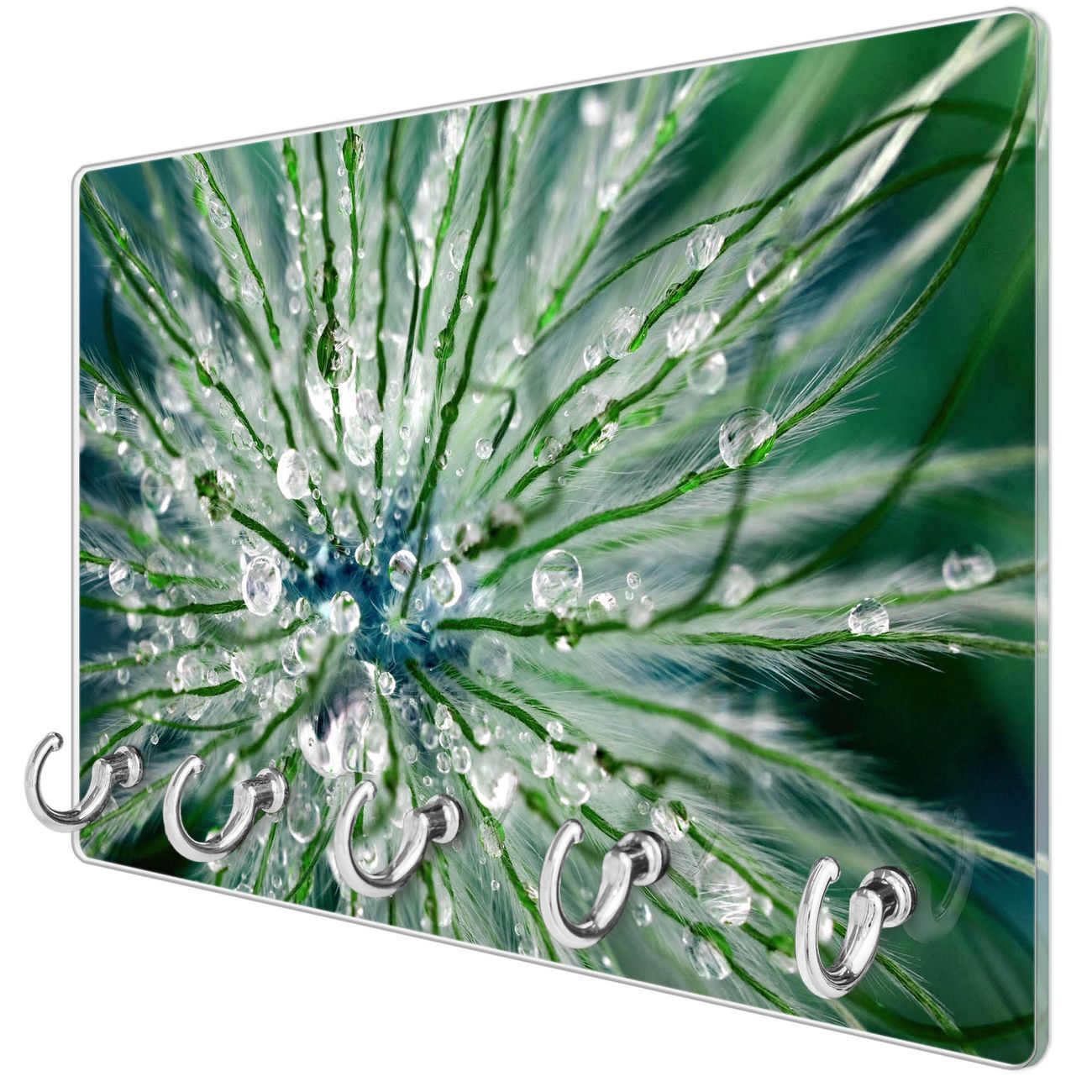 Glas Schlüsselbrett mit 5 Haken Blüte Mit Tautropfen