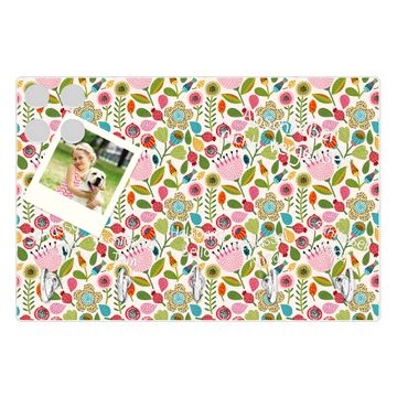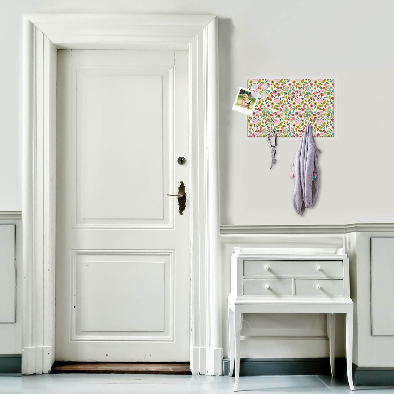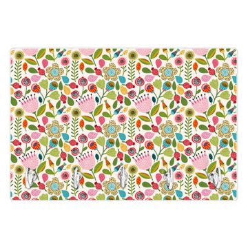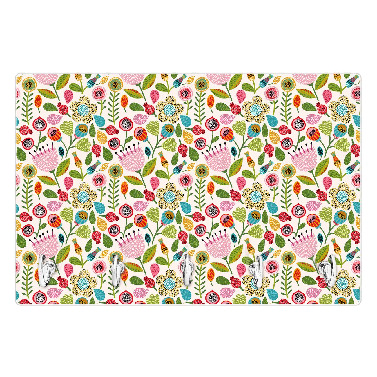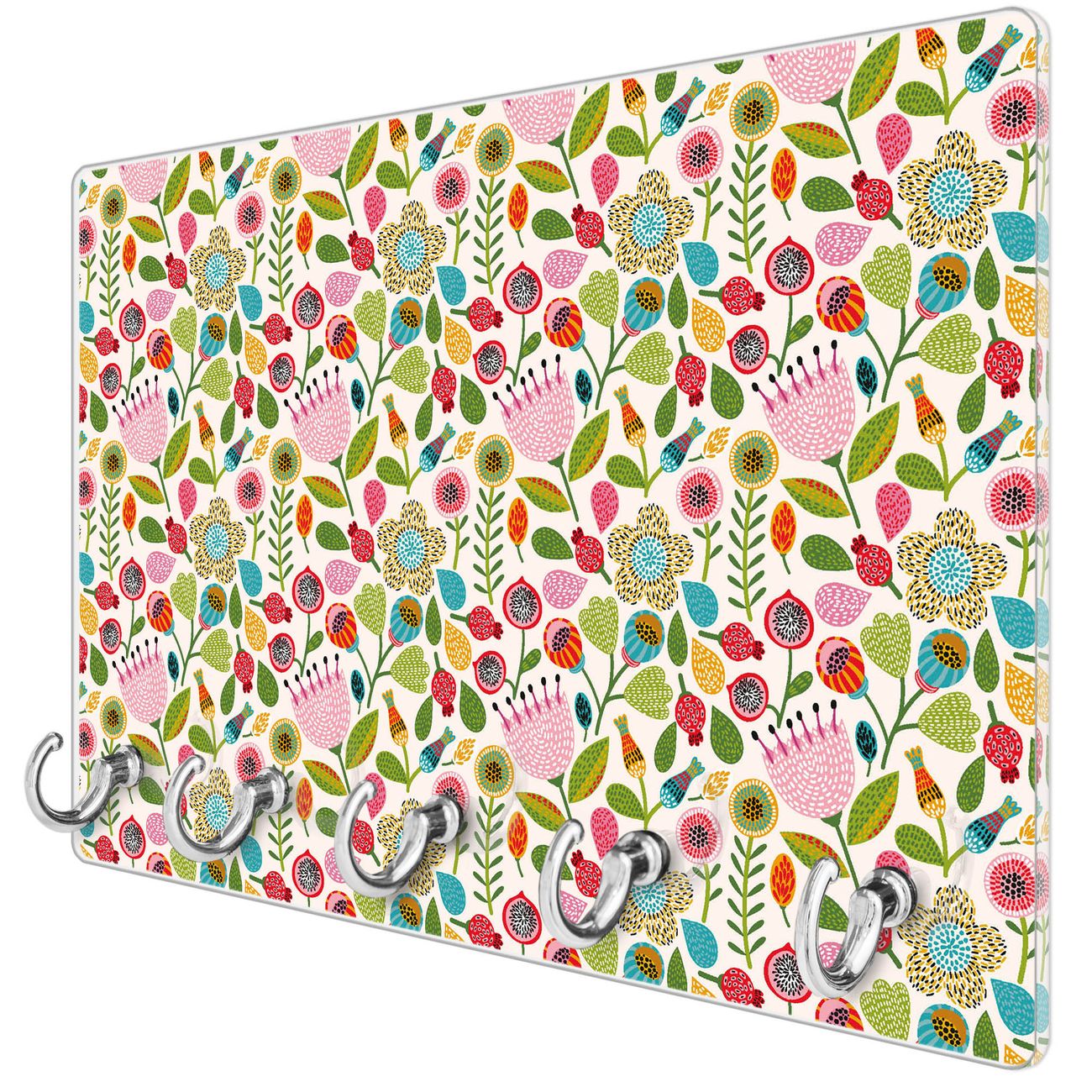 Glas Schlüsselbrett mit 5 Haken Blumen Naiv