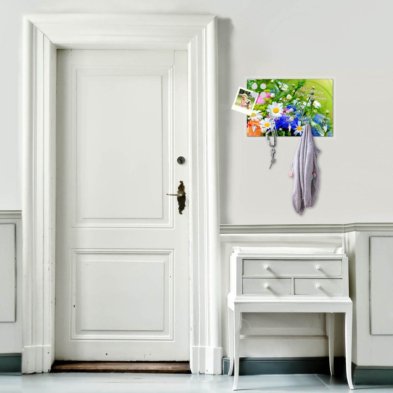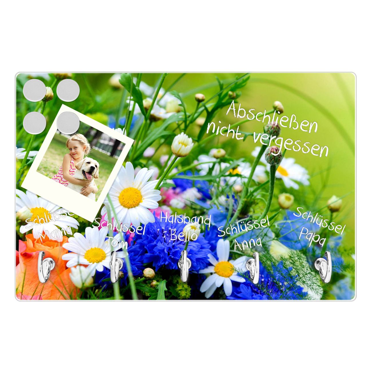 Glas Schlüsselbrett mit 5 Haken Blumenstrauß