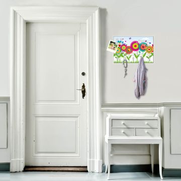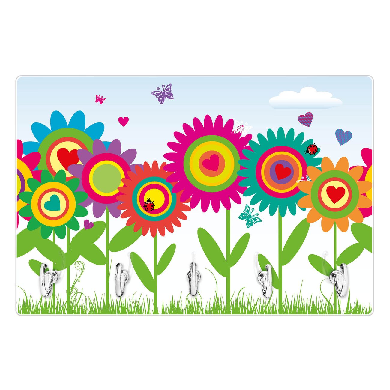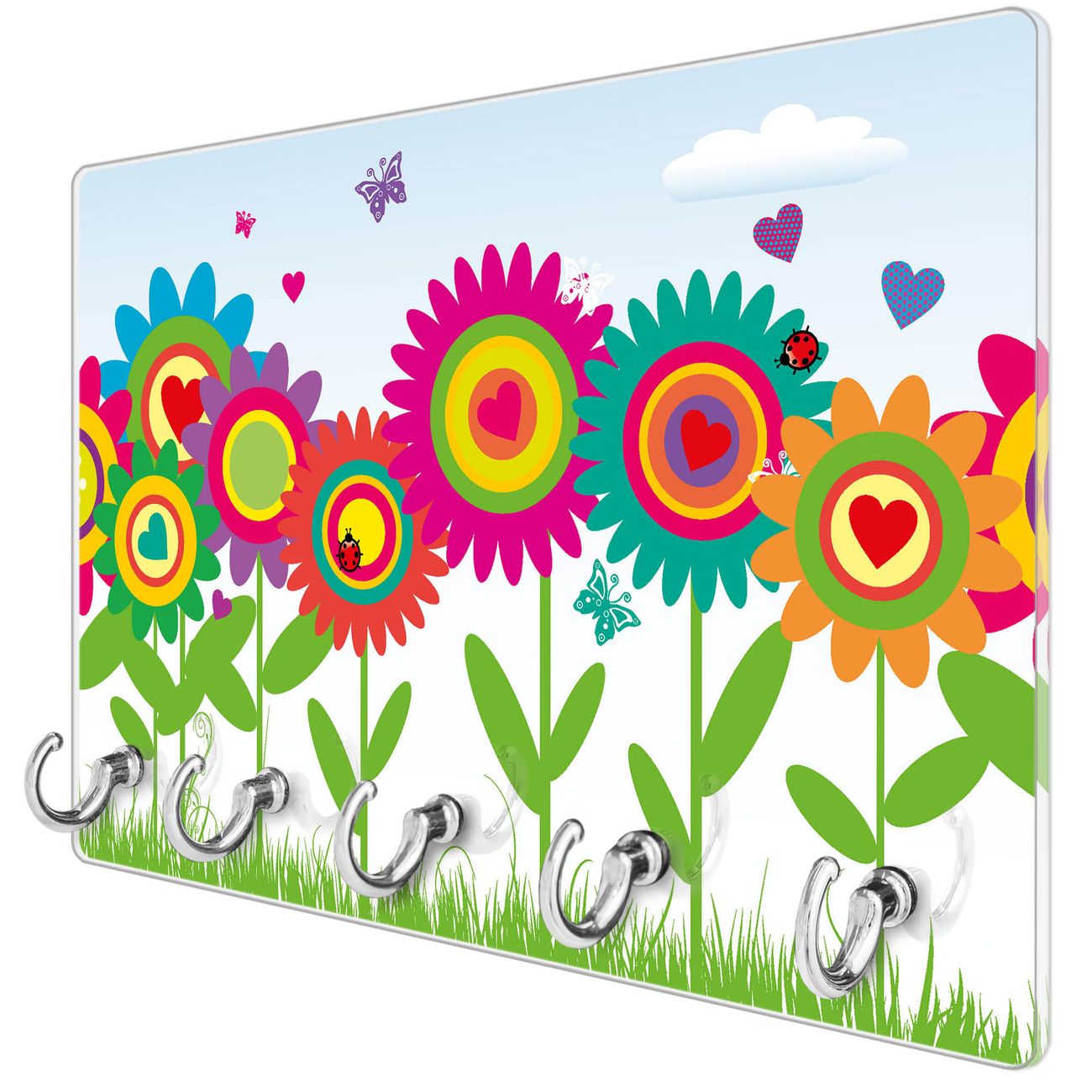 Glas Schlüsselbrett mit 5 Haken Bunte Blumen