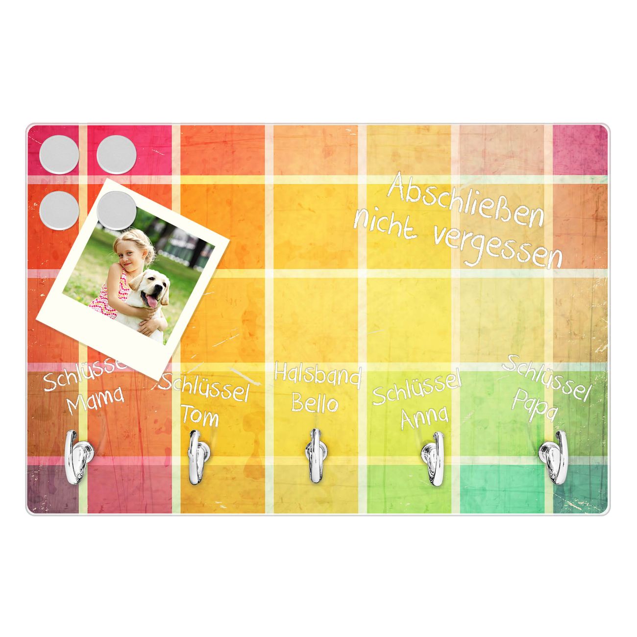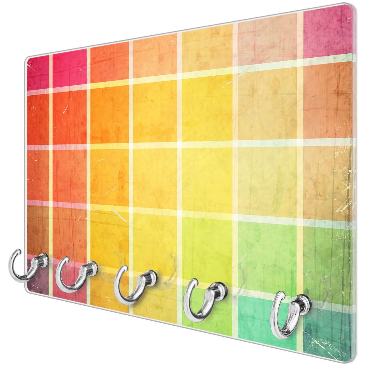 Glas Schlüsselbrett mit 5 Haken Bunte Glasbausteine