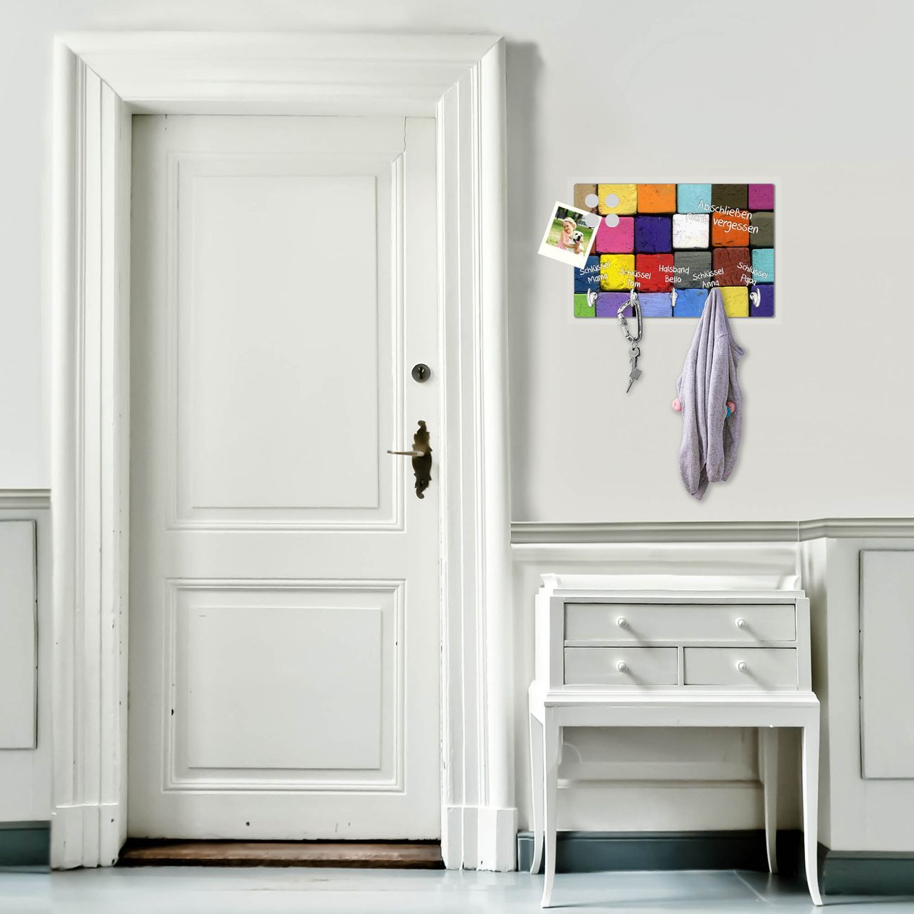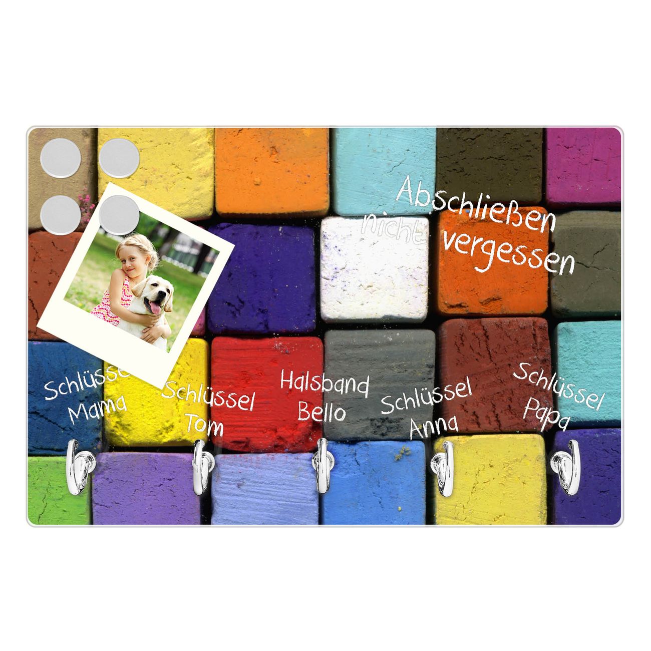 Glas Schlüsselbrett mit 5 Haken Bunte Kreide