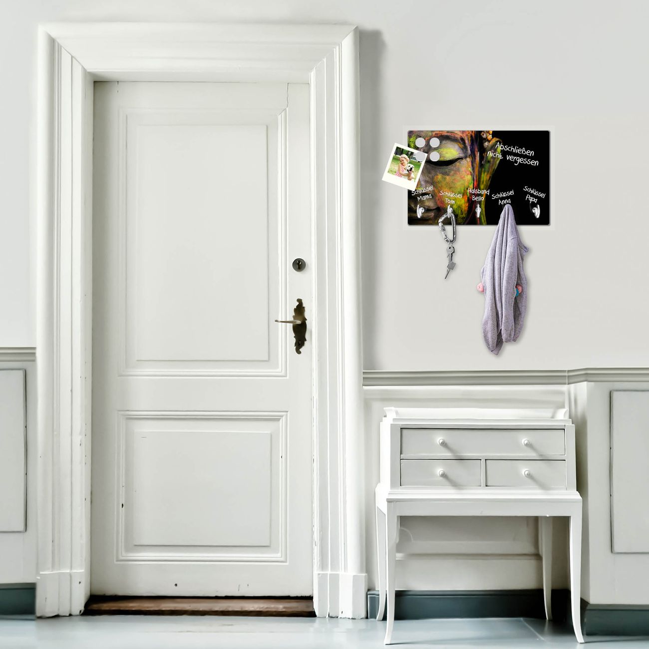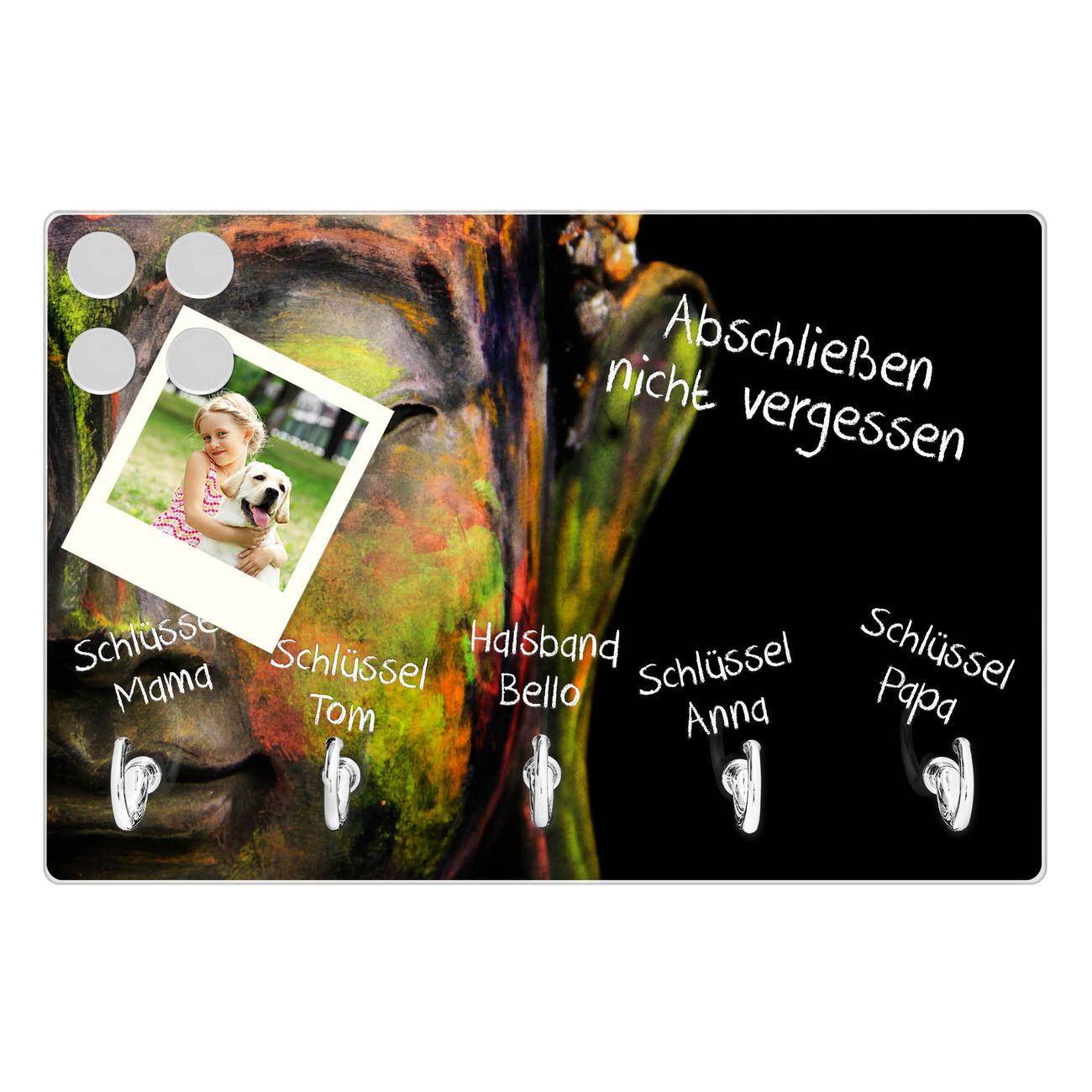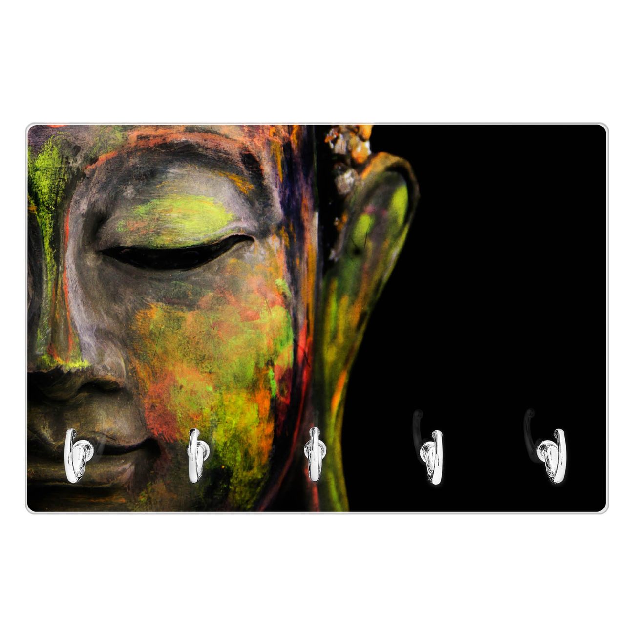 Glas Schlüsselbrett mit 5 Haken Bunter Buddha