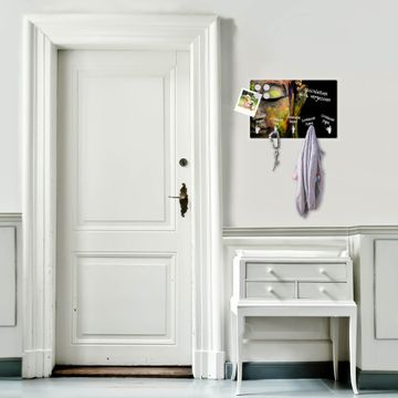 FUNKTION: Mit dem banjado Schlüsselbrett Bunter Buddha hat Ihre Suche nach dem Schlüsselbund endlich ein Ende! Auf gesamt 5 Haken finden auch die größten Schlüssel ihren Platz. Durch den farbenfrohen Motivdruck ist das Schlüsselboard ein Blickfang in jeder Wohnung. DESIGN: Die Schlüsselleiste mit Motiv Bunter Buddha hat ein sehr ansprechendes und ausgefallenes Design. Das Glasboard besteht aus einer gehärteten Glasscheibe mit dem Motiv Ihrer Wahl. Ihre neue Schlüsselaufbewahrung ist funktionell und ein optisches Highlight. DETAILS: Das Schlüsselbrett ist 30 x 20 x 4,5 CM (BxHxT). Das ganze Board besteht aus gehärtetem Sicherheitsglas, die Haken zur Selbstmontage präsentieren sich in Edelstahl-Optik. Für einen sicheren Halt erfolgt die Aufhängung an 2 vorgefertigten Haltern an der Rückseite. Das Montagematerial fügen wir bei. NUTZEN: Hier findet alles seinen Platz: Schlüsselbunde, Geschirrtücher, Hundeleinen oder Kinderjacken. Das Glas kann mit Kreidestiften bzw. Whiteboard-Marker beschrieben werden, mit extrastarken Neodym-Magneten können Sie auch Notizen anheften. BANJADO: Wir sind ein kleines Team aus dem Herzen von Sachsen und fertigen Ihre neue Schlüsselaufbewahrung von Hand an. Sie erhalten Handarbeit und keine preiswerte Importware. Wir hoffen, dass Ihnen unsere Idee zusagt, herzlichst das banjado Team.
