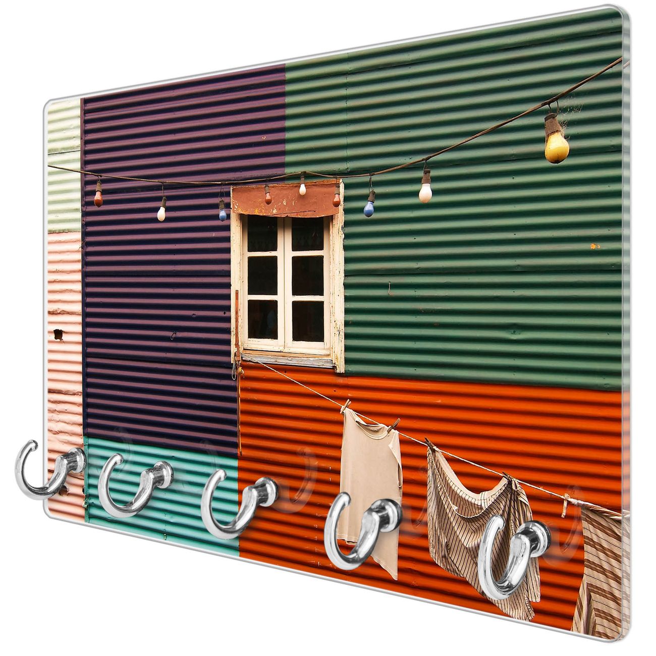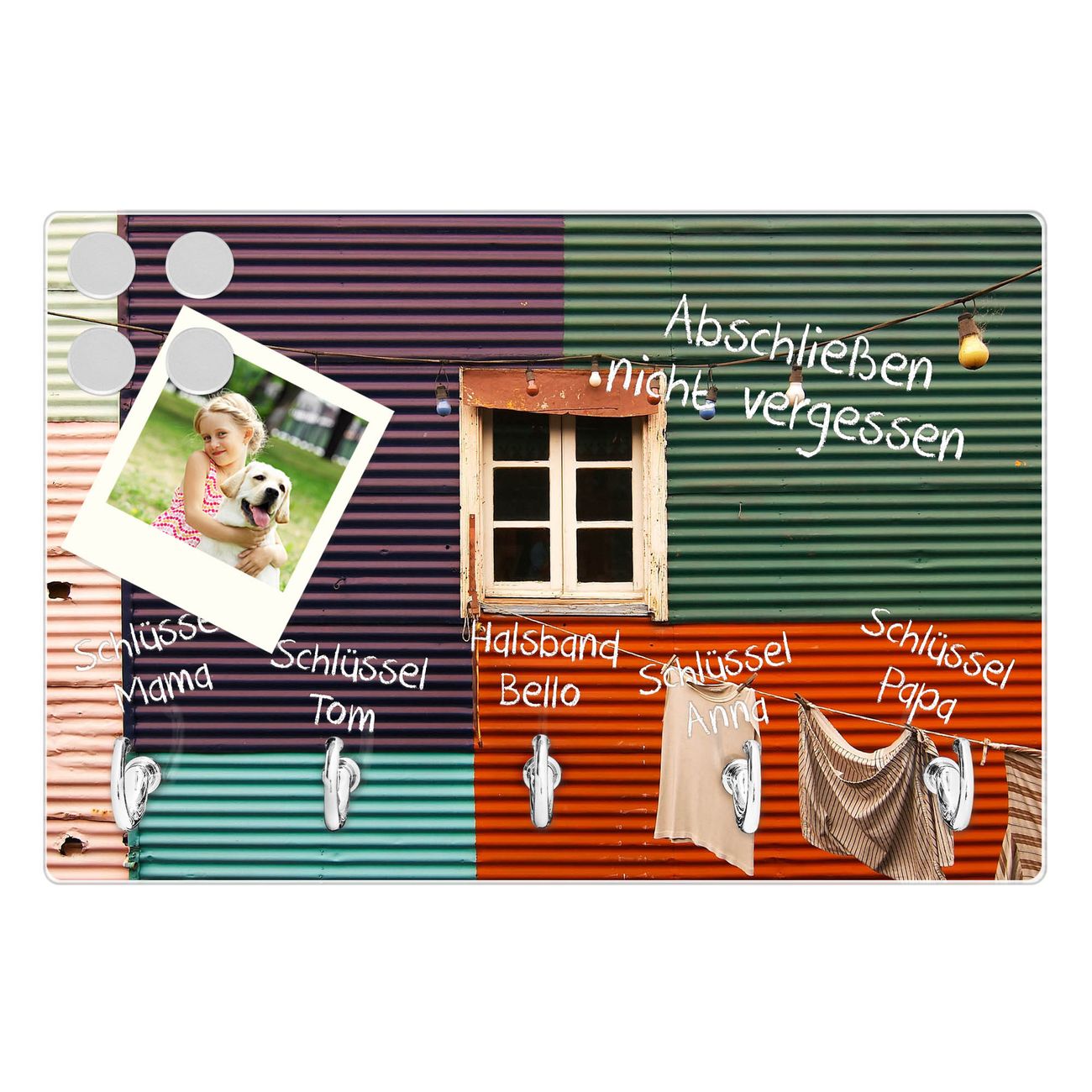 Glas Schlüsselbrett mit 5 Haken Buntes Haus