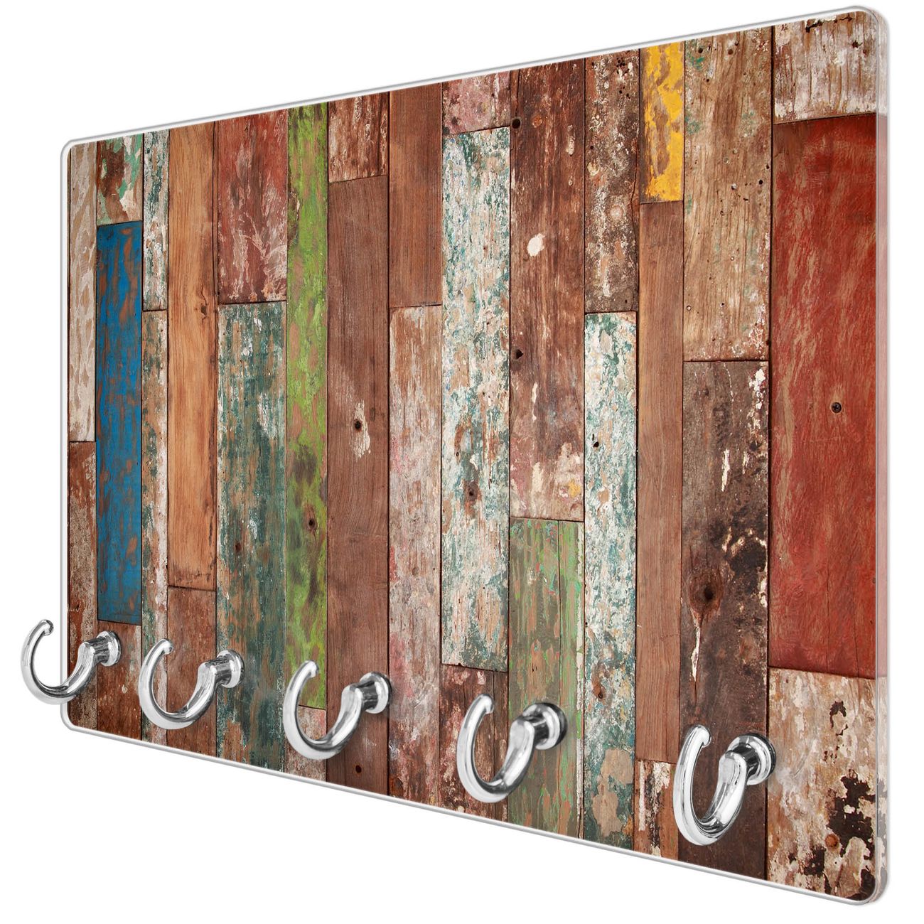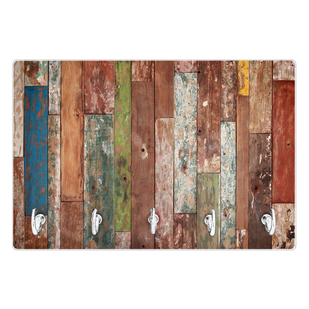Glas Schlüsselbrett mit 5 Haken Buntes Holz