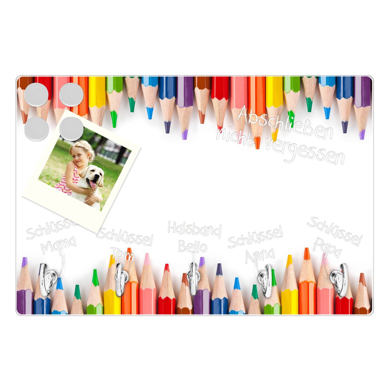 Glas Schlüsselbrett mit 5 Haken Buntstifte