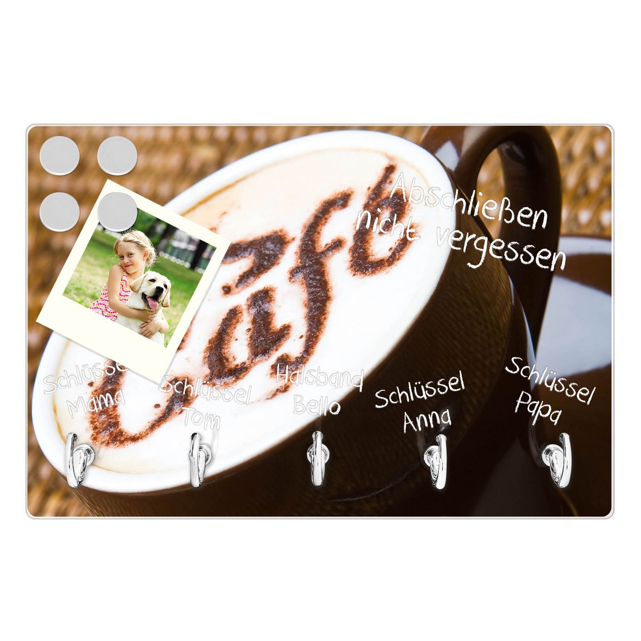 Glas Schlüsselbrett mit 5 Haken Cafe