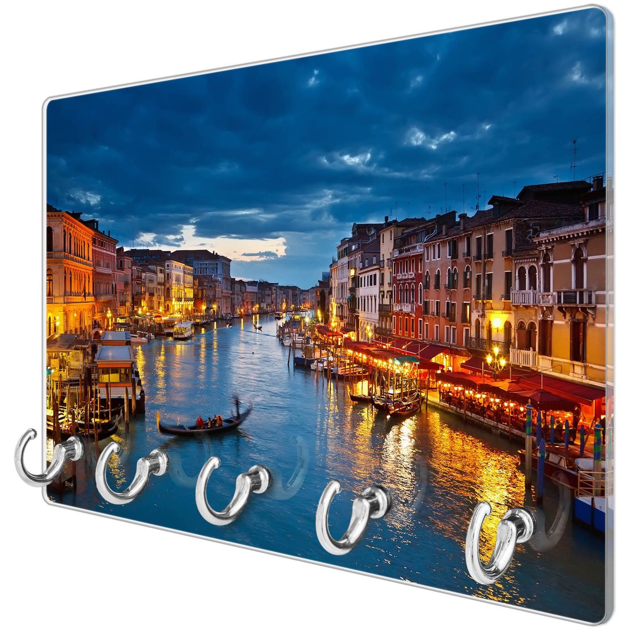 Glas Schlüsselbrett mit 5 Haken Canale Grande Bei Nacht