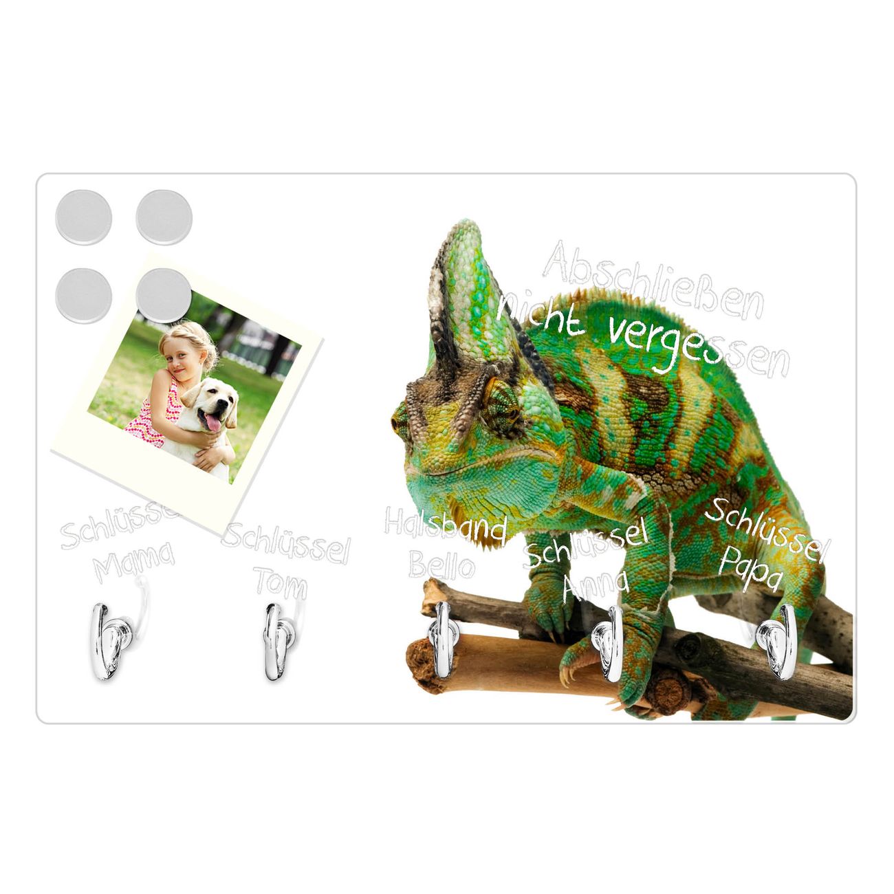 Glas Schlüsselbrett mit 5 Haken Chamäleon