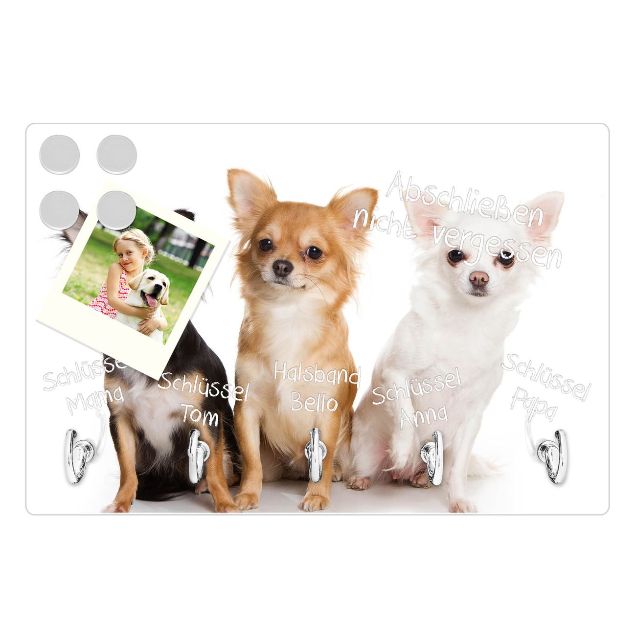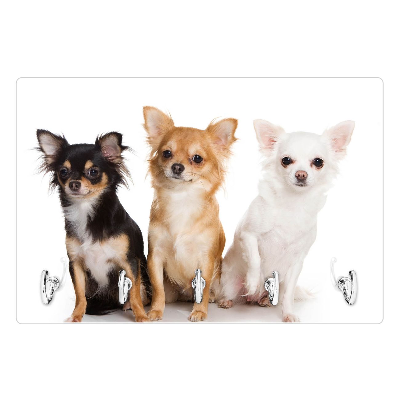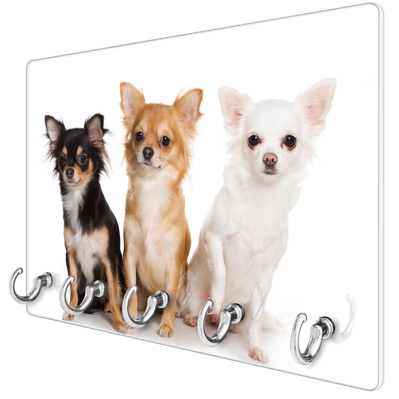 Glas Schlüsselbrett mit 5 Haken Chihuahua