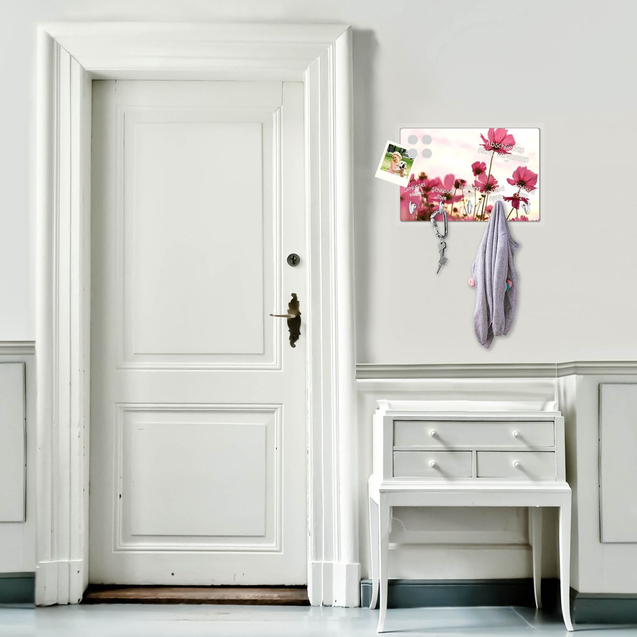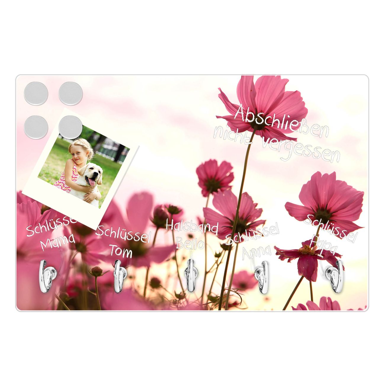 Glas Schlüsselbrett mit 5 Haken Cosmea